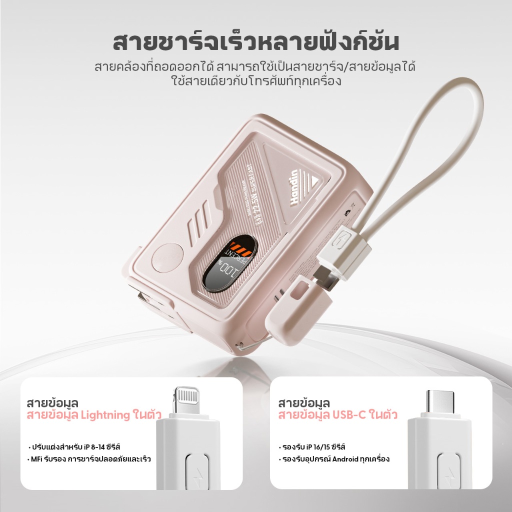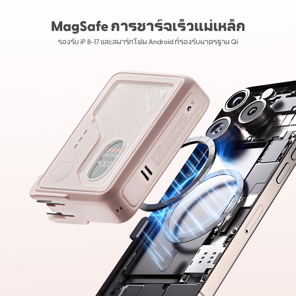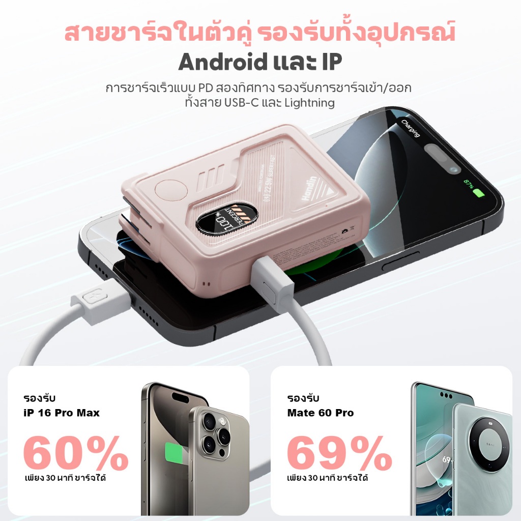 Handin Powerbank 30000mAh พาวเวอร์แบงค์ ชาร์จเร็ว การชาร์จแบบไร้สายด้วยแม่เหล็ก แบตสํารอง ชาร์จเร็ว พาเวอร์แบงค์ ของแทั