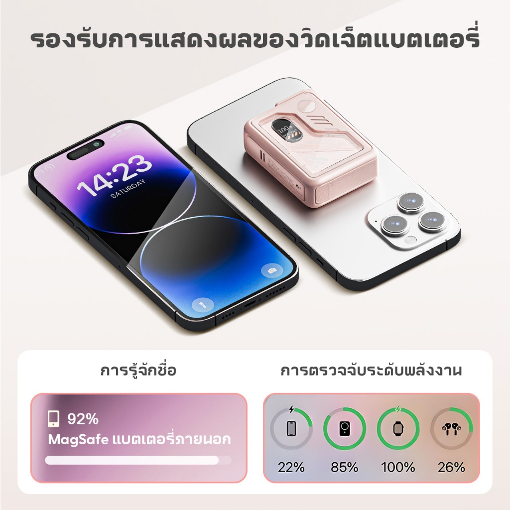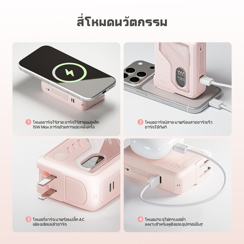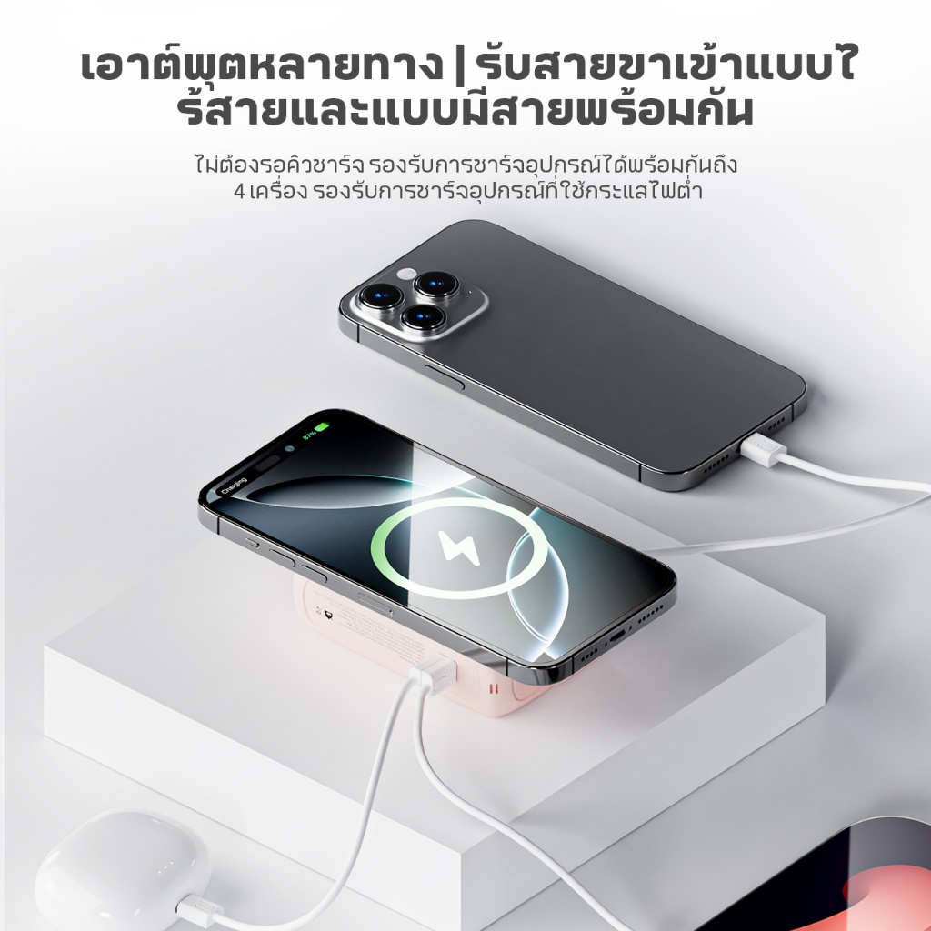 Handin Powerbank 30000mAh พาวเวอร์แบงค์ ชาร์จเร็ว การชาร์จแบบไร้สายด้วยแม่เหล็ก แบตสํารอง ชาร์จเร็ว พาเวอร์แบงค์ ของแทั