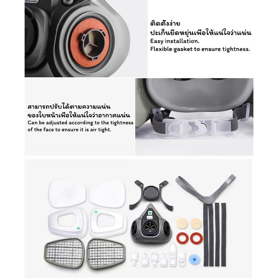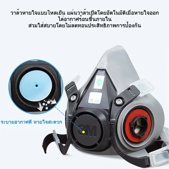หน้ากากพ่นยา3M รุ่น 6200 หน้ากากกันเคมี ป้องกันฝุ่น หน้ากากพ่นสี หน้ากากป้องกันสารเคมี จัดชุด ชนิดใช้ซ้ำได้ กันสารเคมี