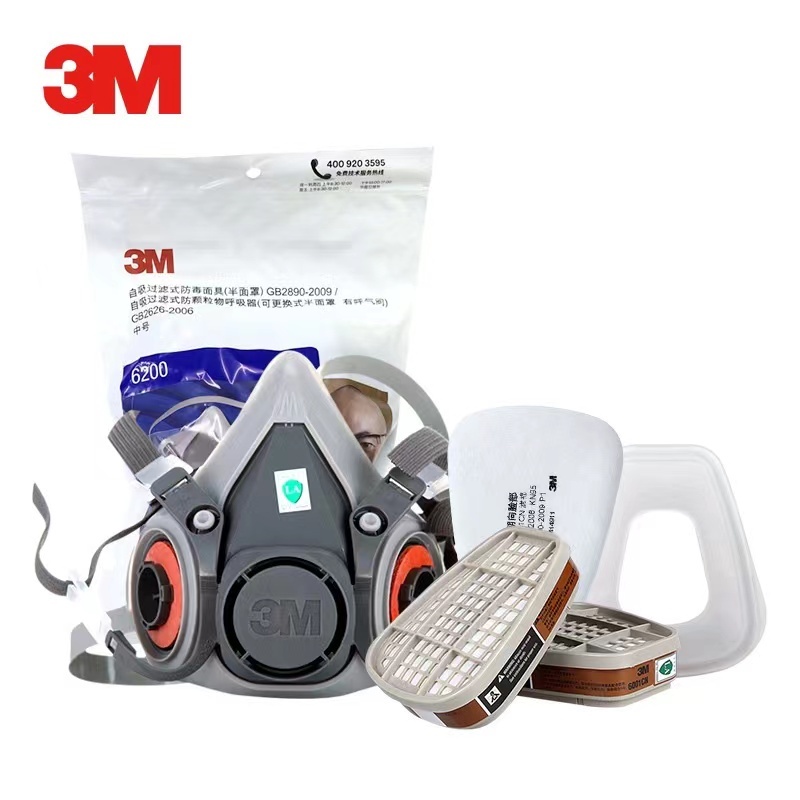 หน้ากากครึ่งหน้าท่อคู่ 3M-6200 ตลับกรอง 3M-6001 แผ่นกรองฝุ่น 3M-5N11 ฝาครอบ 3M-501