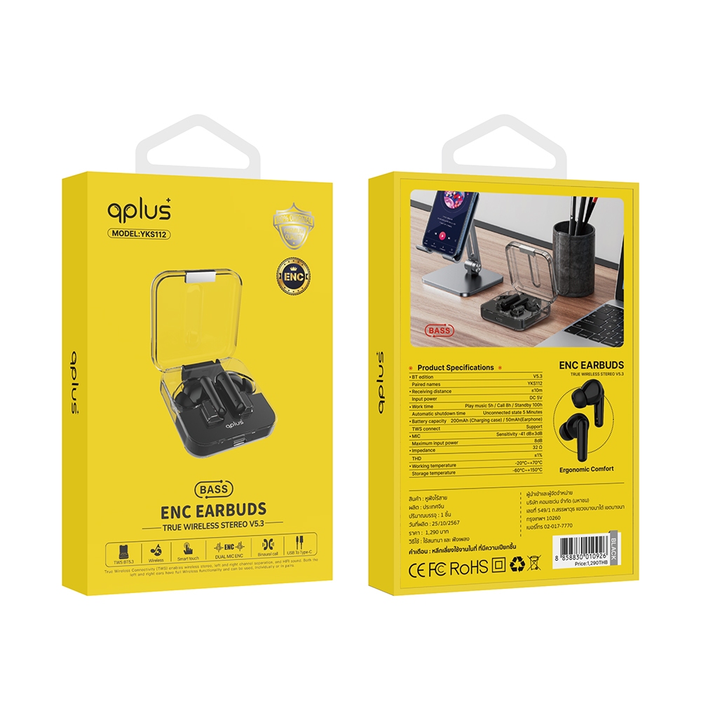 หูฟังไร้สาย QPLUS True Wireless Stereo ENC YKS112 by Banana IT