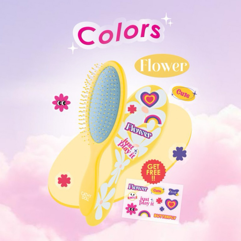 CATHY DOLL เคที่ดอลล์ เฟล็กซีสมูทแฮร์บรัช หวีแปรงถนอมเส้นผม (สติ๊กเกอร์คละลาย)