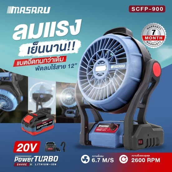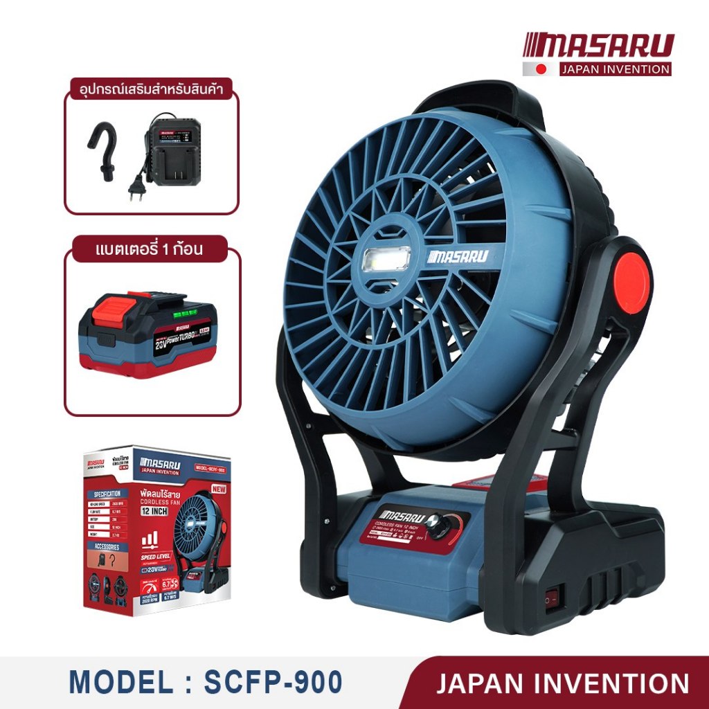 Masaru พัดลมไร้สาย รุ่น SCFP-900 ขนาด 12 นิ้ว พัดลมพกพา พัดลมแบตเตอรี่ พัดลมแคมป์ปิ้ง