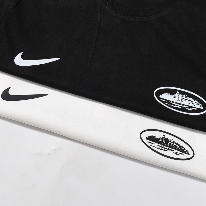 #T55 Plus ขนาดผ้าฝ้าย Crewneck Monochrome โลโก้ป้ายขนาดเล็กรูปแบบตัวอักษรพิมพ์ Vintage Unisex คู่ Streetwear กราฟิก Tee เกาหลีแฟชั่นเสื้อยืดสําหรับชาย