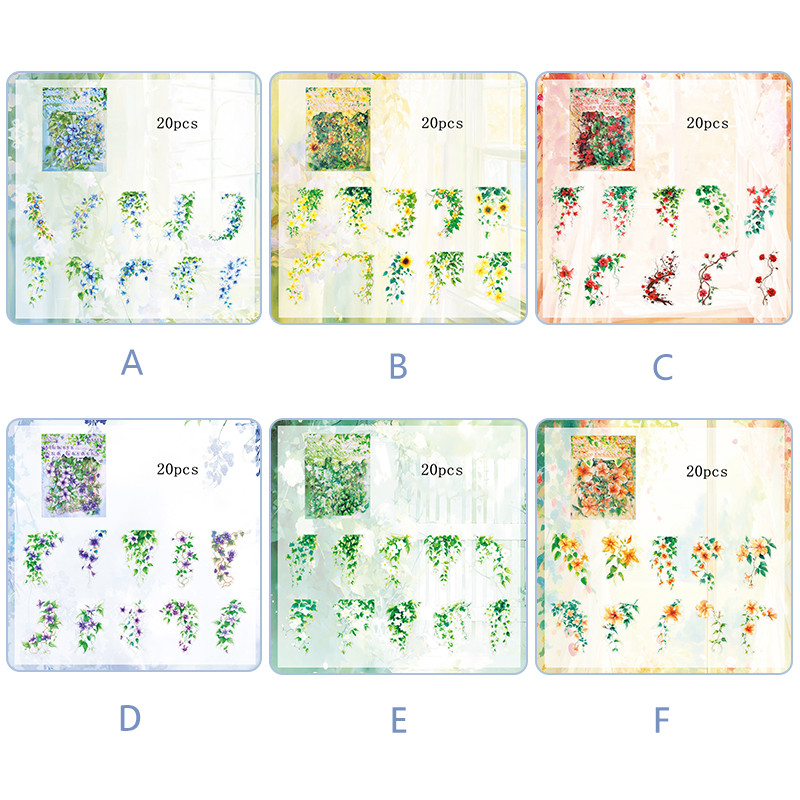 20 ชิ้น Original ดอกไม้ตื้นฤดูร้อน Series PET สติกเกอร์ Journal Deco DIY สติกเกอร์