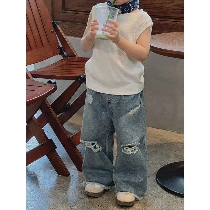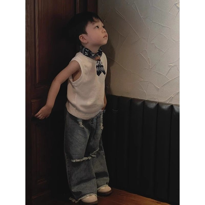 ฤดูร้อน เสื้อกั๊กผ้าฝ้ายสีพื้นสำหรับเด็กชาย เสื้อยืดแขนสั้น สไตล์สบายๆ สำหรับเด็กชาย เสื้อไม่มีแขนสำหรับเด็กเล็ก