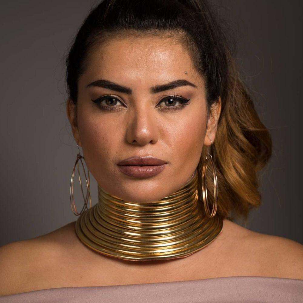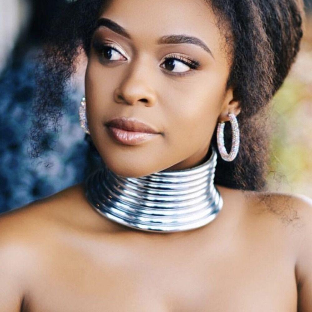 AMARGARET สร้อยคอโชคเกอร์, แรงบิดหนังเครื่องประดับแอฟริกัน, Bijoux Vintage Statement Maxi Gold Collar สร้อยคอผู้หญิง