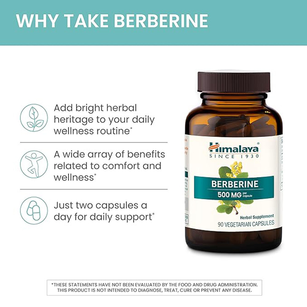 Himalaya Berberine สารสกัดจากต้นบาร์เบอร์รี่ (500mg/แคปซูล) 90 แคปซูล