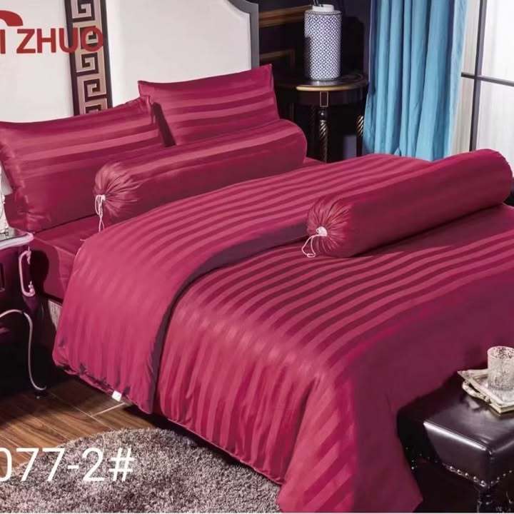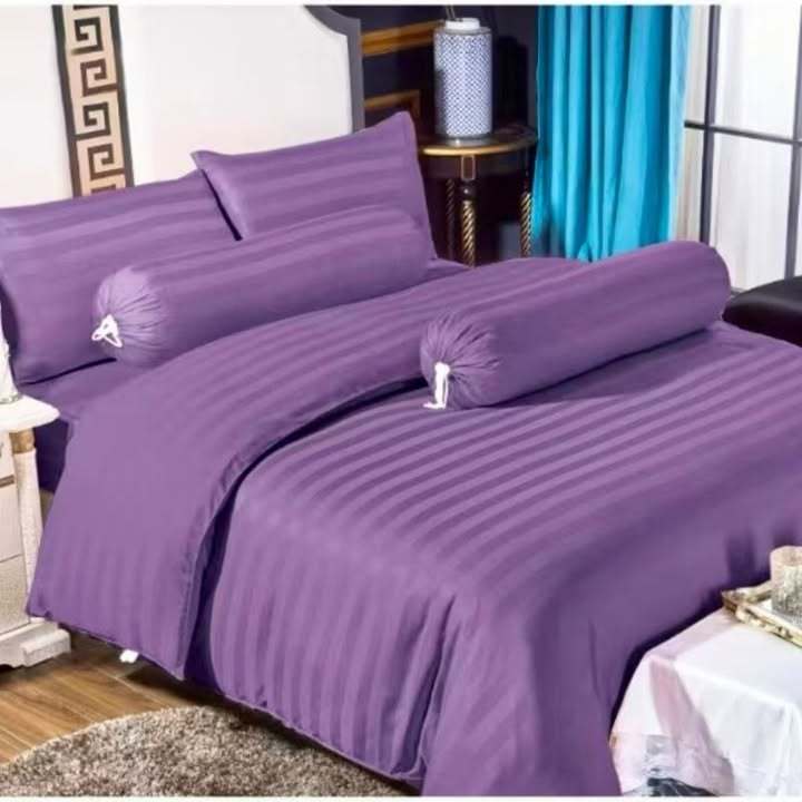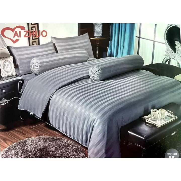 Boxin เซ็ทผ้าปูที่นอน 6ฟุต สีพื้นลายริ้ว ชุด6ชิ้น กันไรฝุ่น เกรดพรีเมี่ยม ส่งฟรี