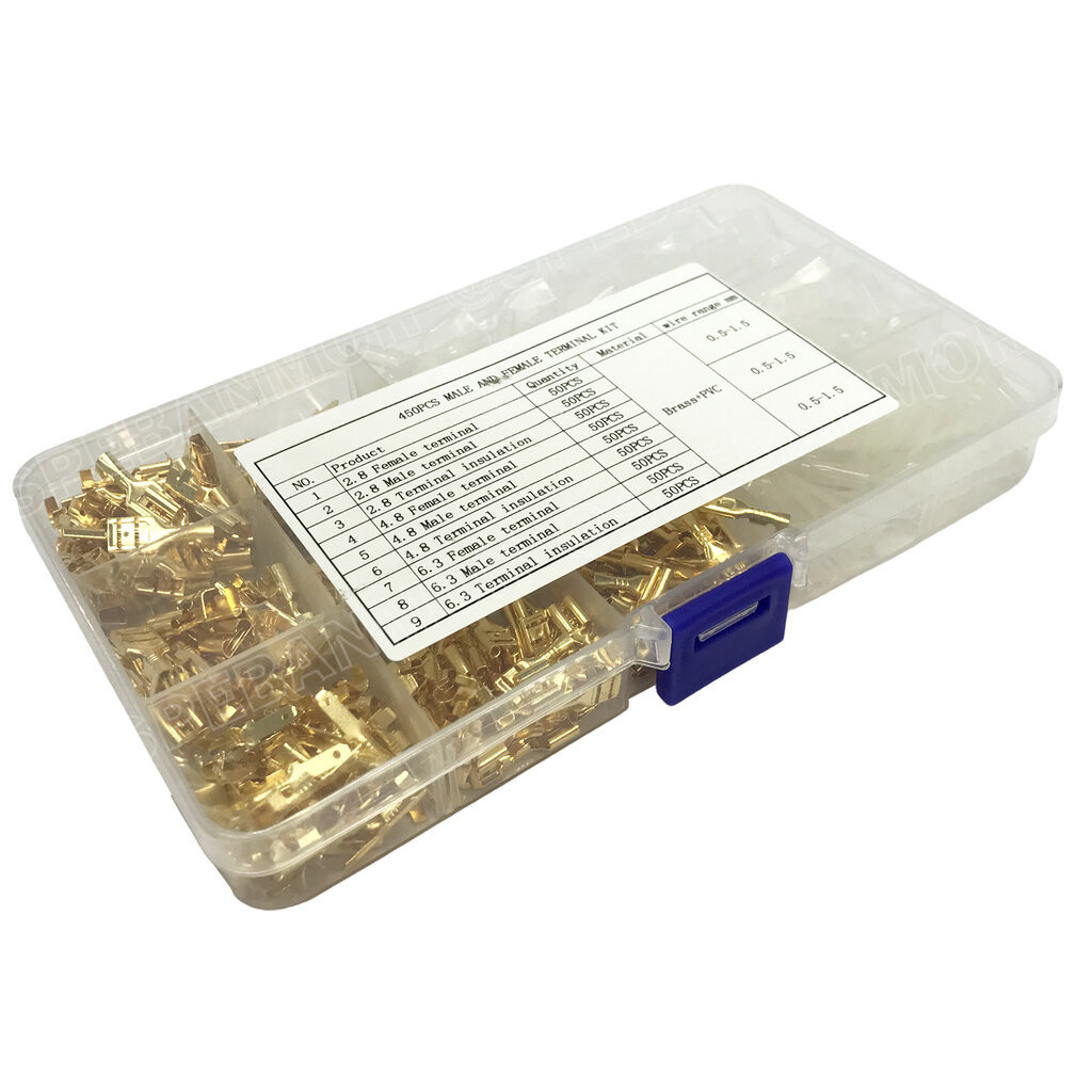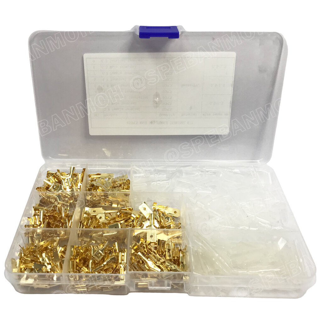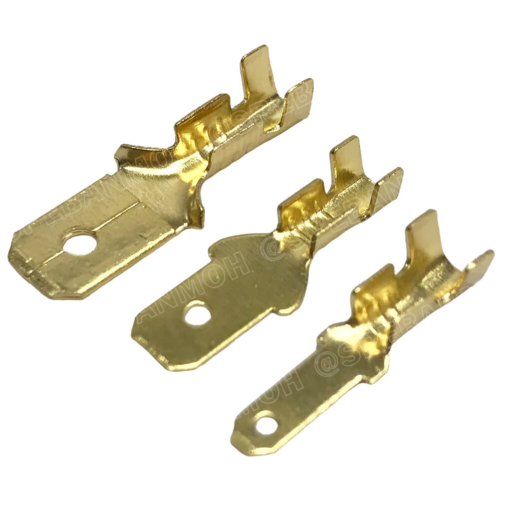 F-450 หางปลาเสียบเปลือยทองเหลืองแบบแบน ขั้วต่อสายไฟทองเหลือง ปลอกยางหุ้มหาง ขั้วต่อหางปลา ตัวผู้ ตัวเมีย ชุดเชื่อมต่อสายไฟ หัวเสียบสายไฟทองเหลือง Un-Insulated Crimping Terminal ขนาด 2.8 , 4.8 , 6.3 mm