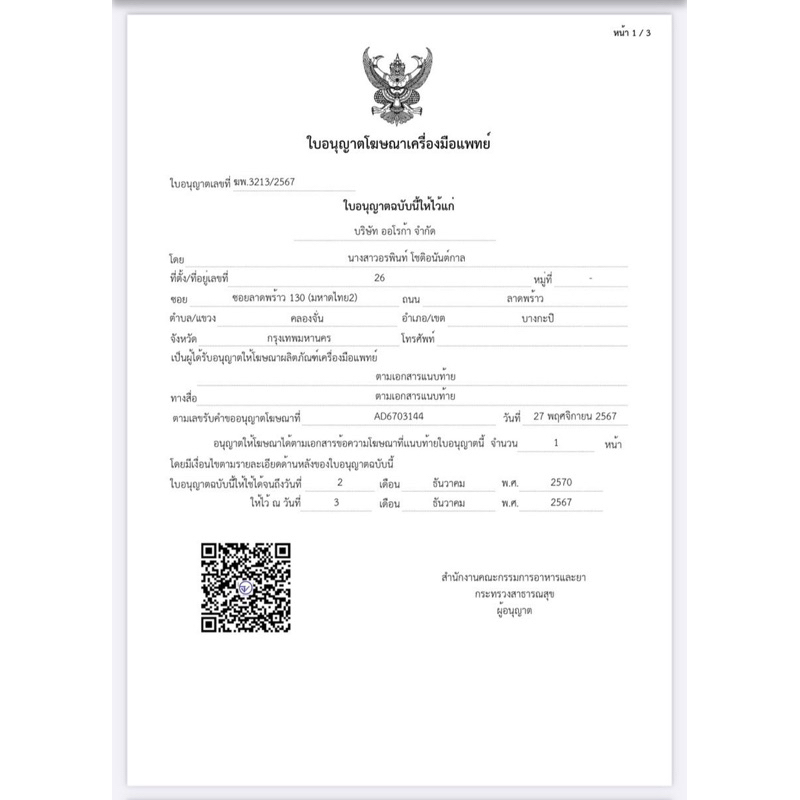 เลขที่ใบอนุญาต อย.67-2-3-3-0004620