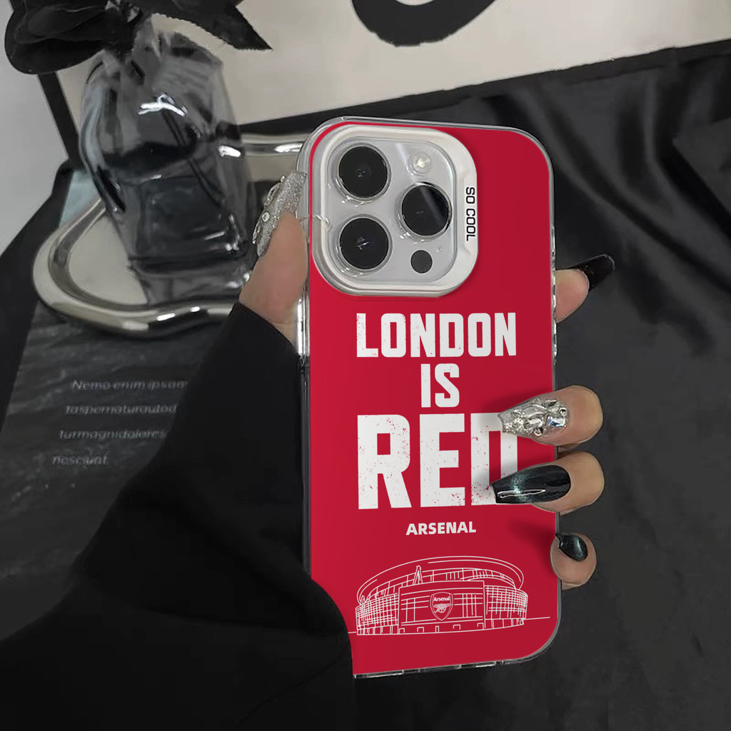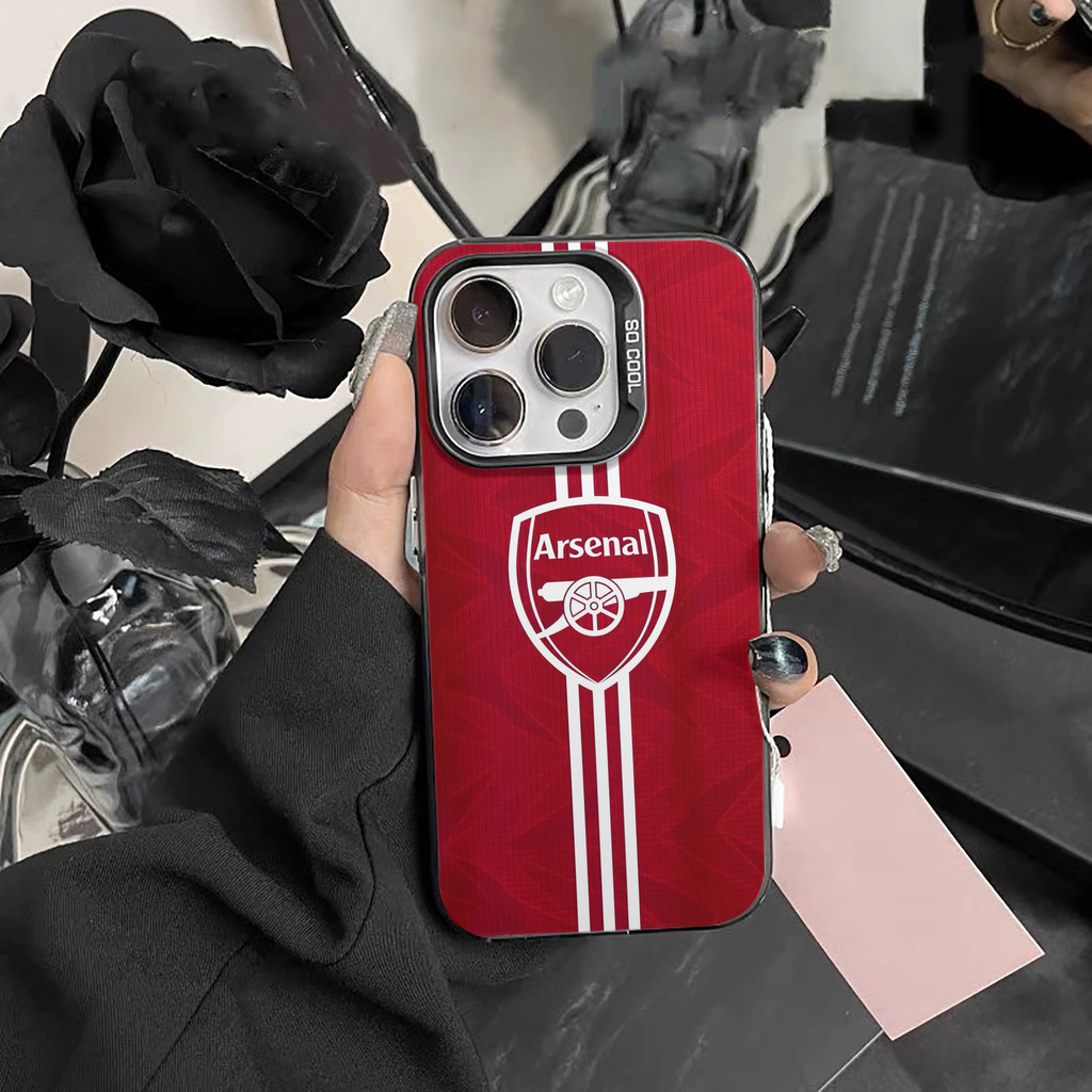 เคสไอโฟนiPhone 16 Pro Maxอาร์เซนอล ฟุตบอลคลับSimple สีทึบ Frosted Electroplate เลนส์ป้องกันเคสโทรศัพท์สําหรับ iPhone 16 Pro Max 15 11 7plus 14 12 13 7 8 Plus XR XS