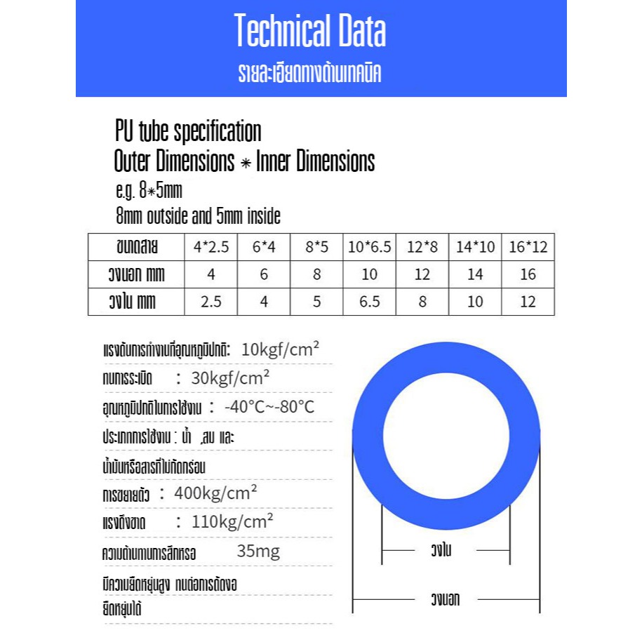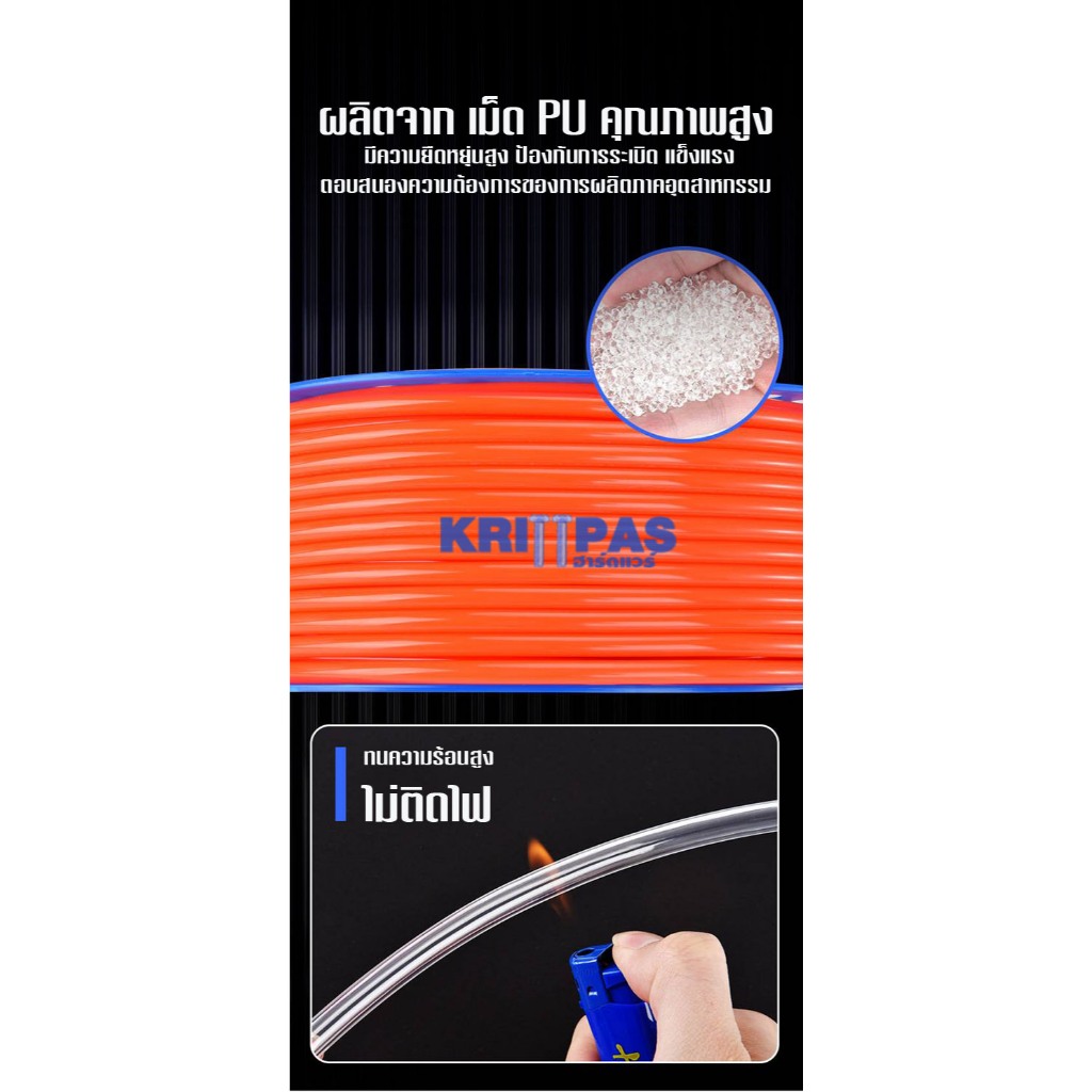 200M/100M สาย PU สายลม นิวเมติก Pneumatic คุณภาพสูง มีขนาด 4 , 6 , 8 ,10,12,14,16mm ราคาต่อม้วน มีสีใส สีดำ สีฟ้า สีส้ม ขายตรงจากโรงงาน