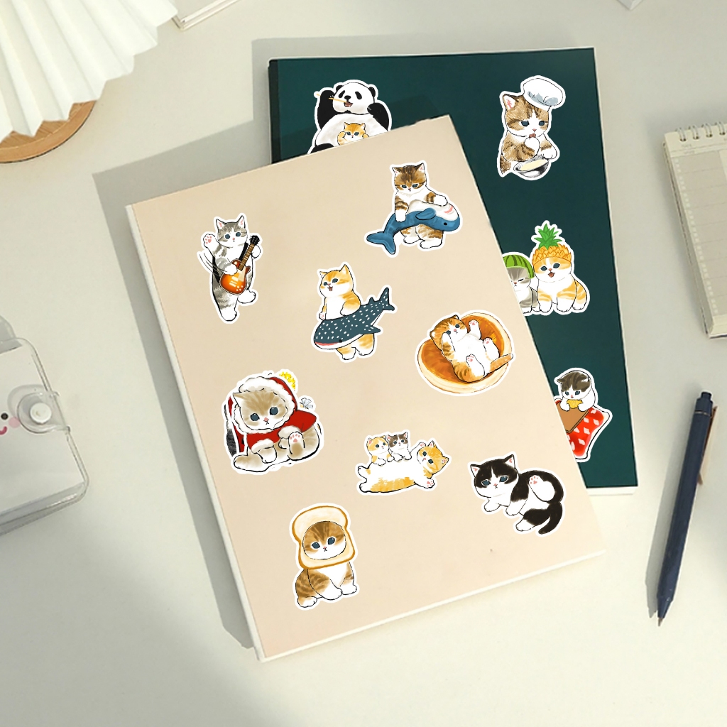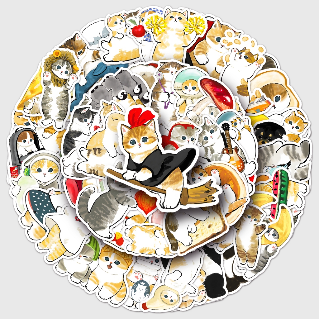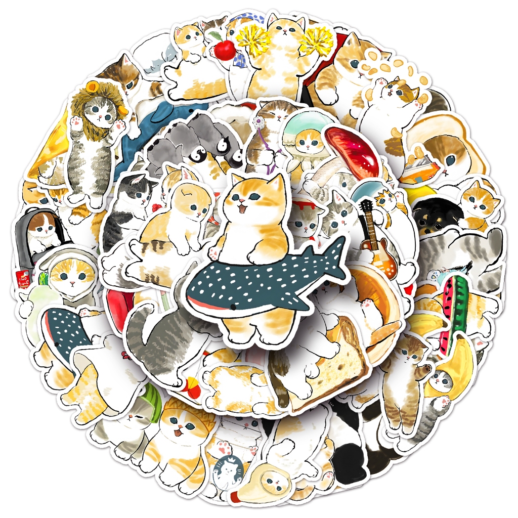 50ชิ้นน่ารักการ์ตูนแมวสติ๊กเกอร์ น่ารัก แมวสัตว์กราฟฟิตีกันน้ําตกแต่งแล็ปท็อปกระเป๋ารูปลอก