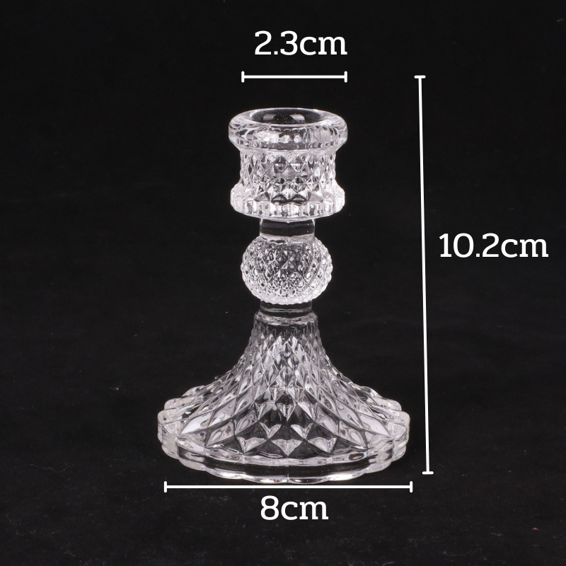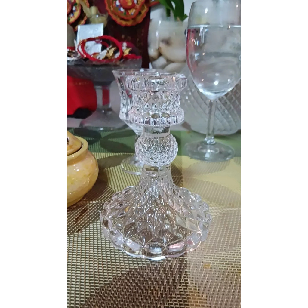 ที่วางเทียน เชิงเทียน แก้วเทียน เนื้อแก้วหนา ของไหว้พระ ความสูง 10.2ซม. ลายเพชร