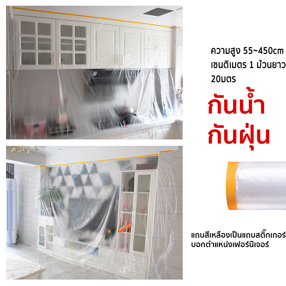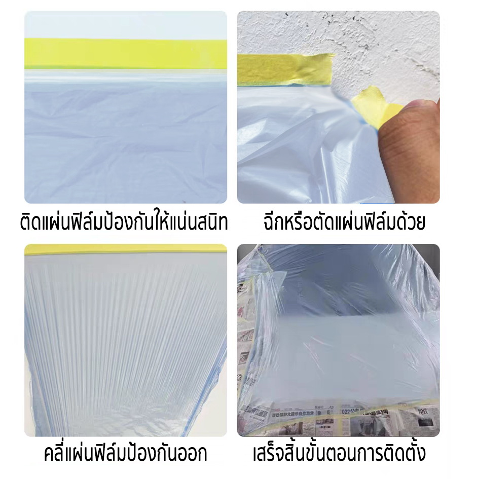 ?พลาสติกปิดพ่นสี มีเทปกาวในตัว เทปฟิล์ม เทปฟิล์มสำหรับงานพ่นสี พลาสติกคลุมกันฝุ่นเฟอร์นิเจอร์ กันรอย กันน้ำ แบบพกพา