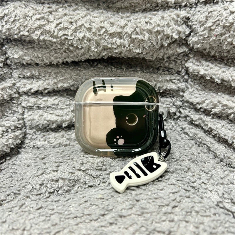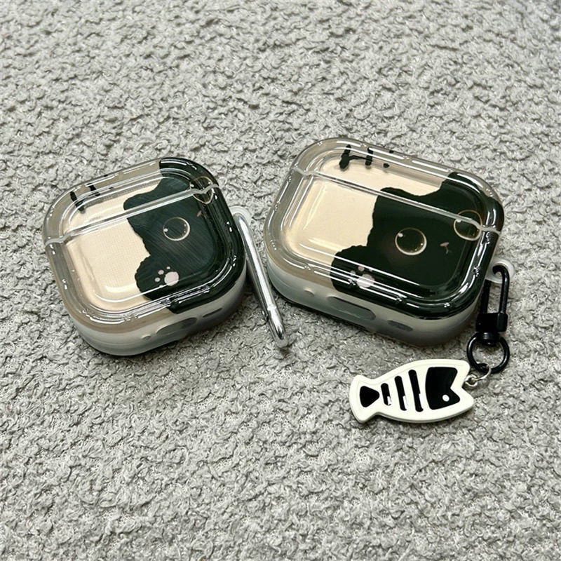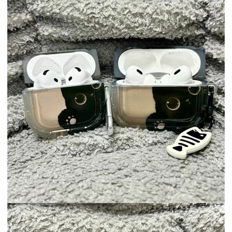 จี้แมวดําน่ารักเหมาะสําหรับ แอปเปิล แอร์พอด มือโปร2 รุ่นเคสป้องกันบลูทูธ 2 รุ่น 3 รุ่น 4 รุ่นเคสหูฟัง
