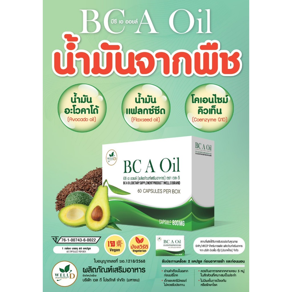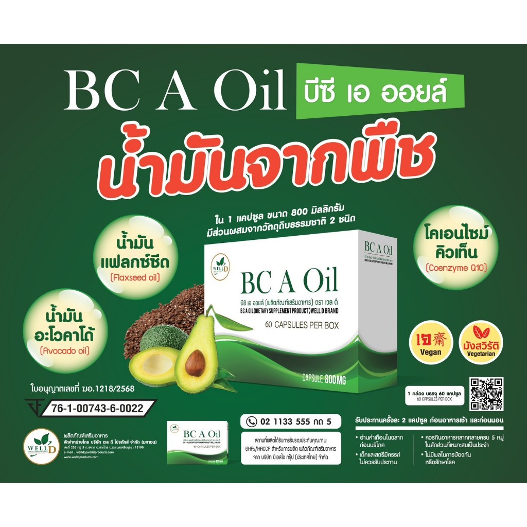 บีซี เอ ออยล์ BC-A-Oil (น้ำมันอะโวคาโด) 1 กล่อง มี 60 แคปซูล