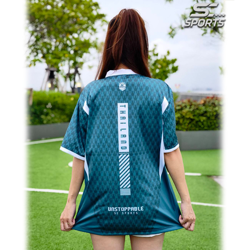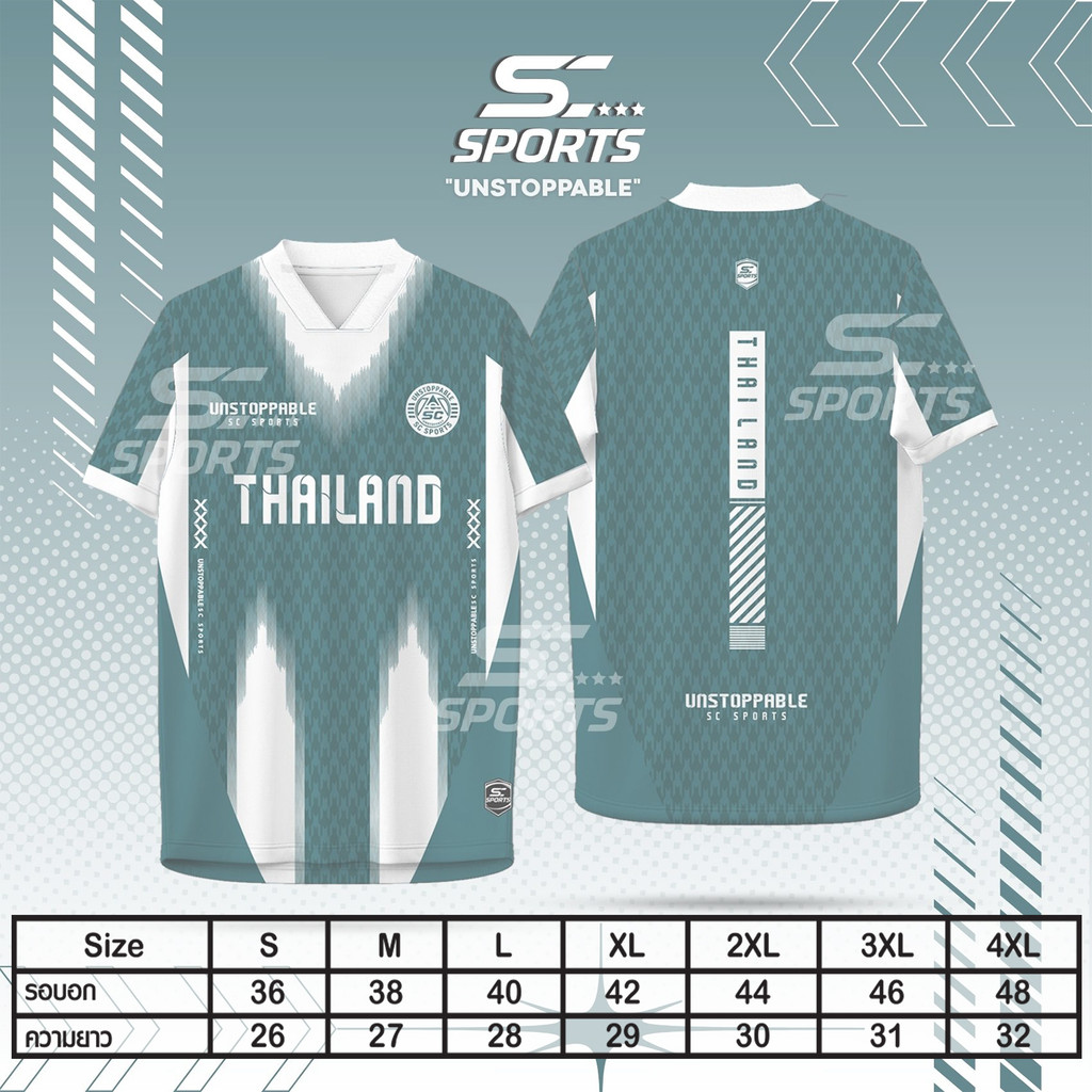 SC Sports เสื้อกีฬา พิมพ์ลายทั้งตัว คอวีตัด ใส่ วิ่ง เที่ยว หรือทำงานก็เท่ รุ่น PL-04-เขียว-ขาว