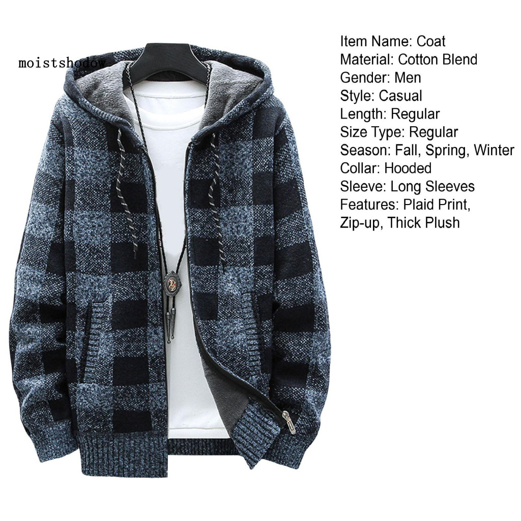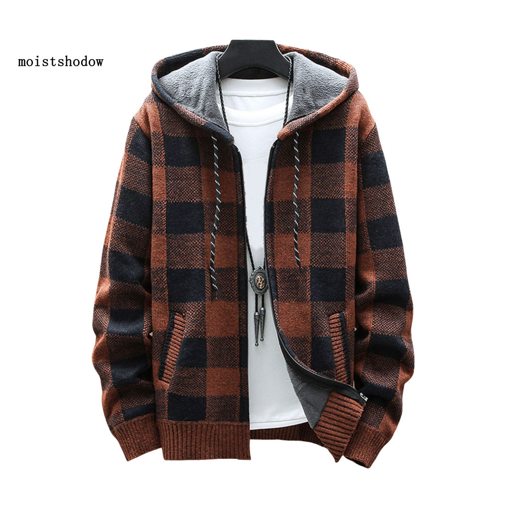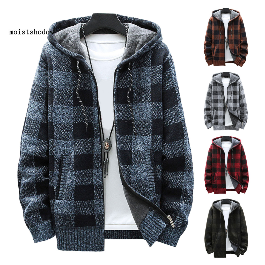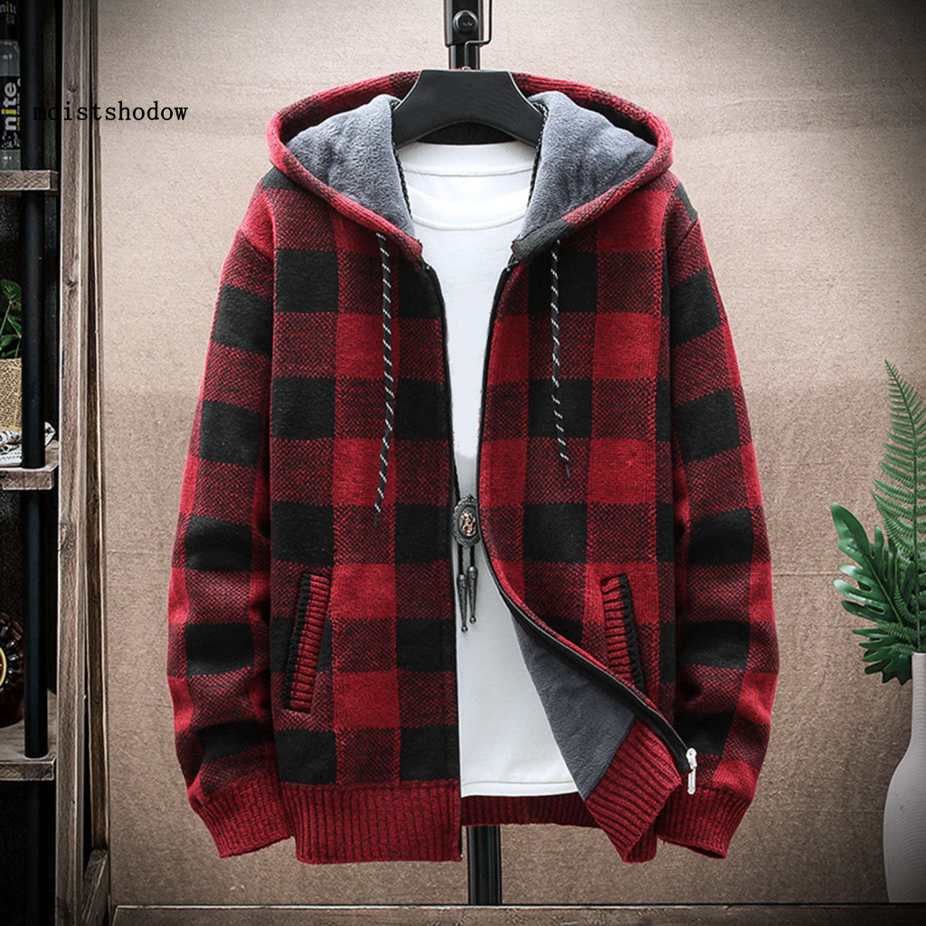 เมกะวัตต์ ผู้ชายแจ๊กเก็ตเสื้อกันหนาวเสื้อผู้ชายฤดูหนาวคลุมด้วยผ้าลายสก๊อตพิมพ์เสื้อกับกระเป๋าคู่ที่อบอุ่นถักแจ๊กเก็ตสําหรับทุกวันกิจกรรมกลางแจ