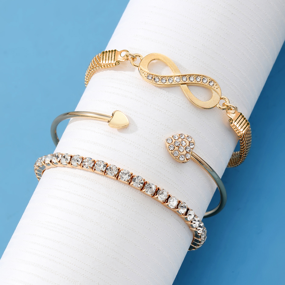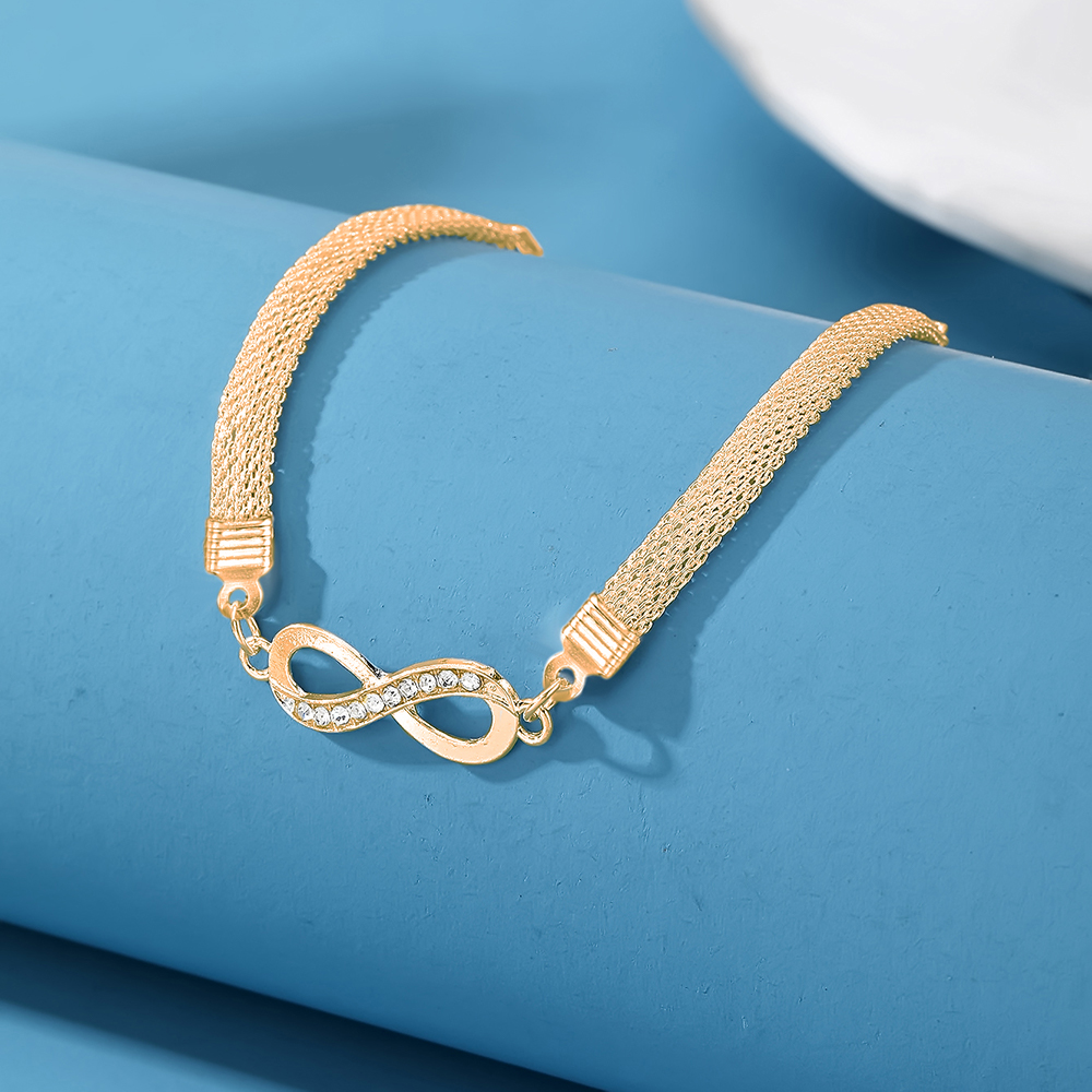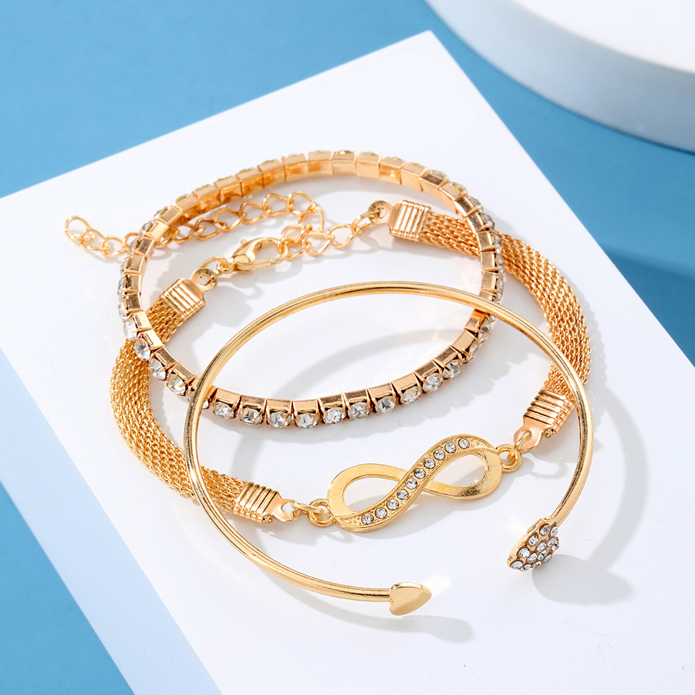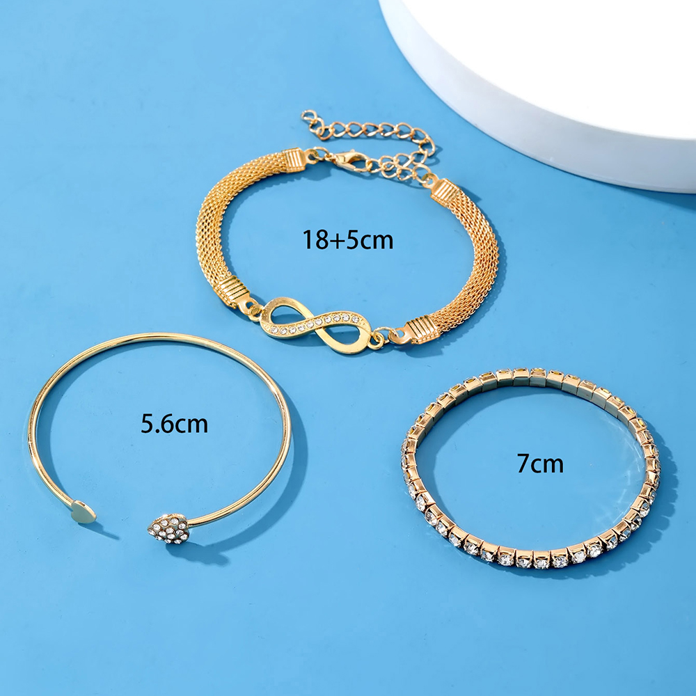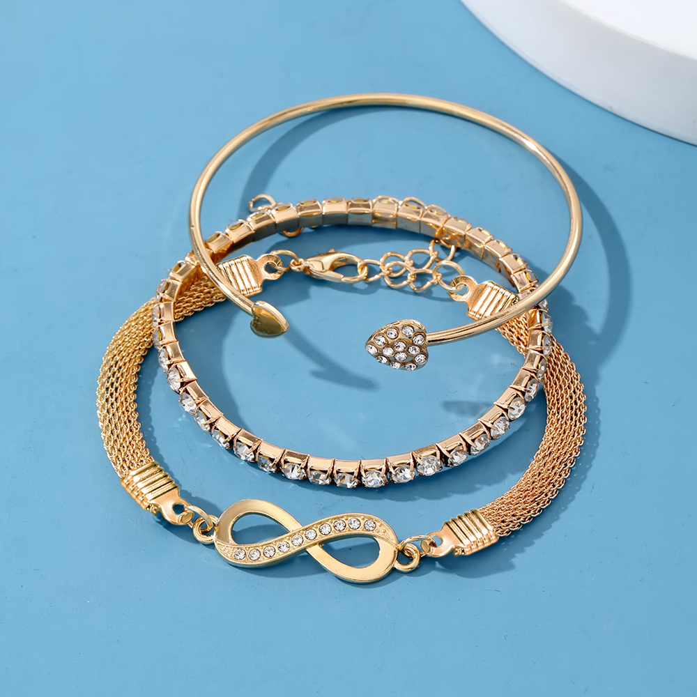 ชุดโซ่งูแฟชั่นสีทองและสร้อยข้อมืออินฟินิตี้-3ชิ้นด้วยเพชรประกายของขวัญที่สมบูรณ์แบบสําหรับเธอ