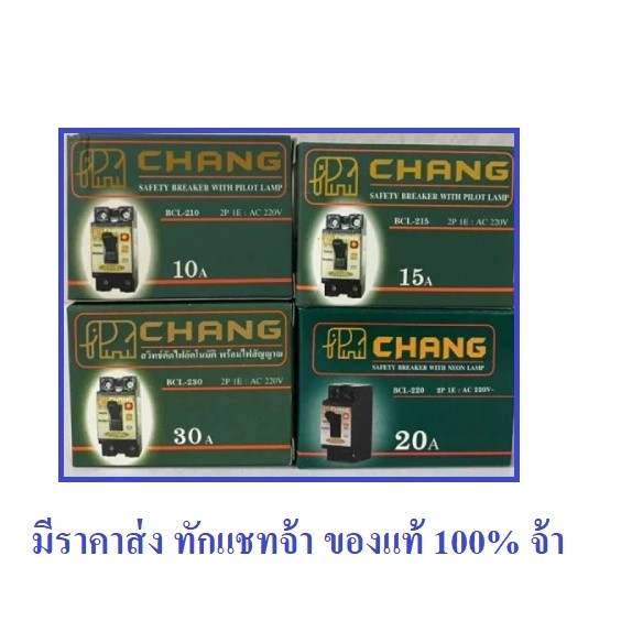 Chang เบรกเกอร์ พร้อมไฟสัญญาณ 2P 10A , 15A , 20A ,30A Safety Breaker รุ่น BCL-210 โล๊ะ