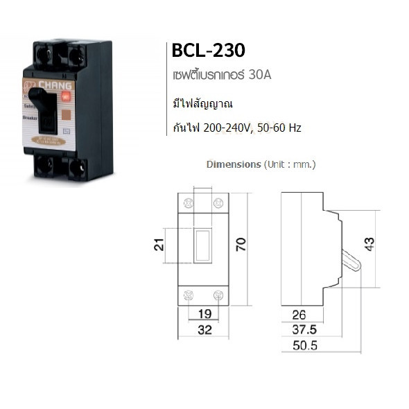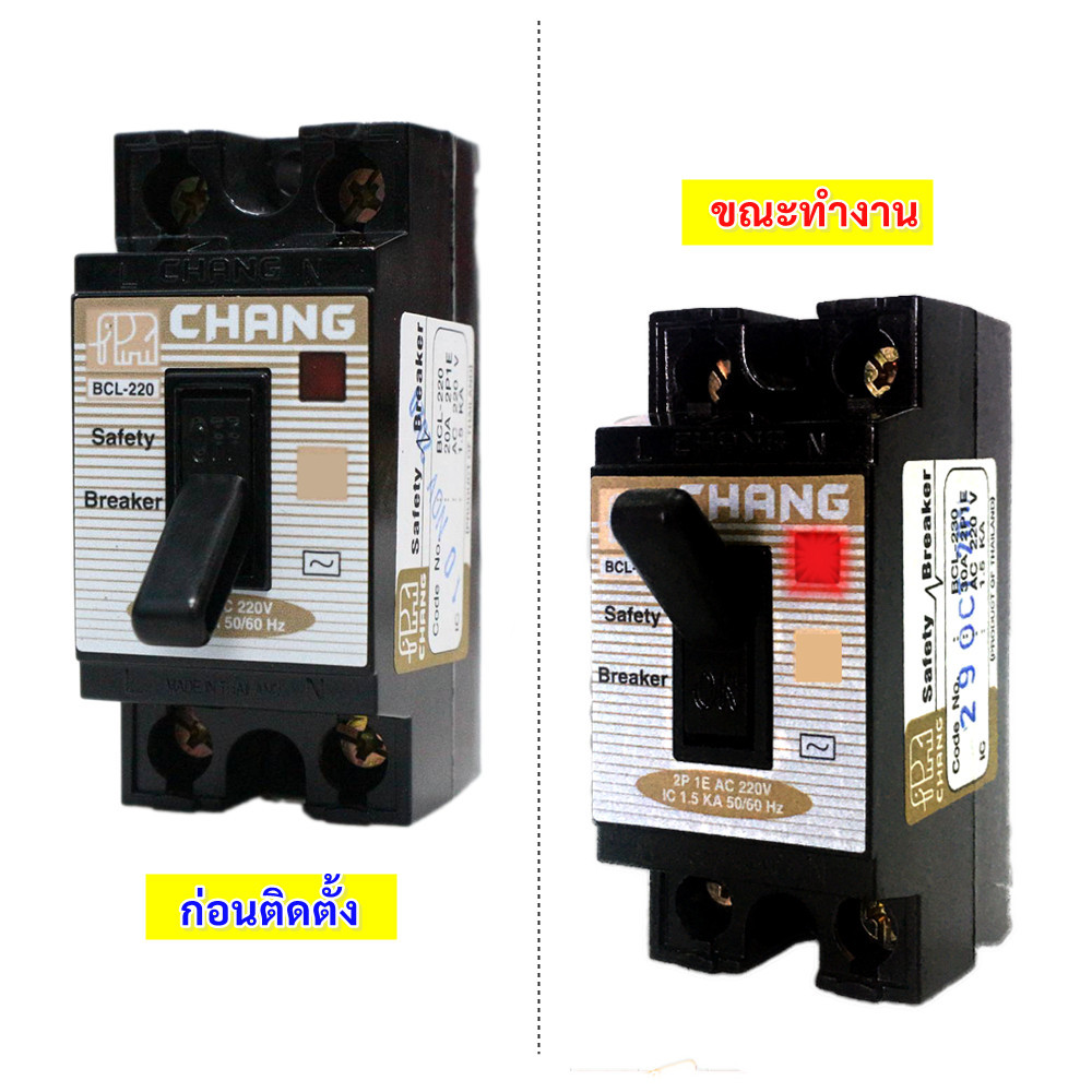 Chang สวิตซ์ตัดตอนอัติโนมัติ พร้อมไฟสัญญาณ 2P 10A 15A , 20A, 30A Safety Breaker รุ่น BCL-210 220 230