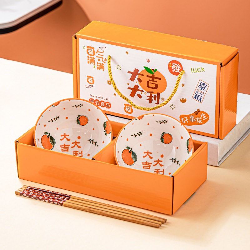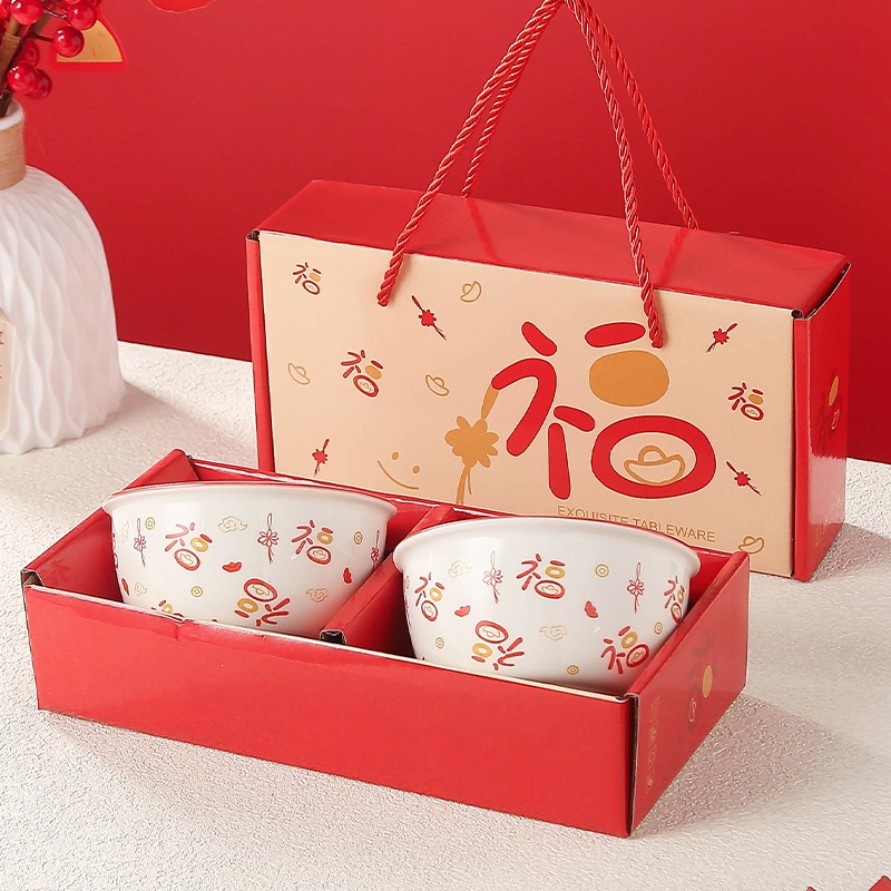 (เซ็ท 2 ใบ) ชุดถ้วยเซรามิก 2 ใบ พร้อมตะเกียบ ชุดของขวัญ ของรับไหว้ เกรดคุณภาพ สินค้า! พร้อมกล่องนะคะ