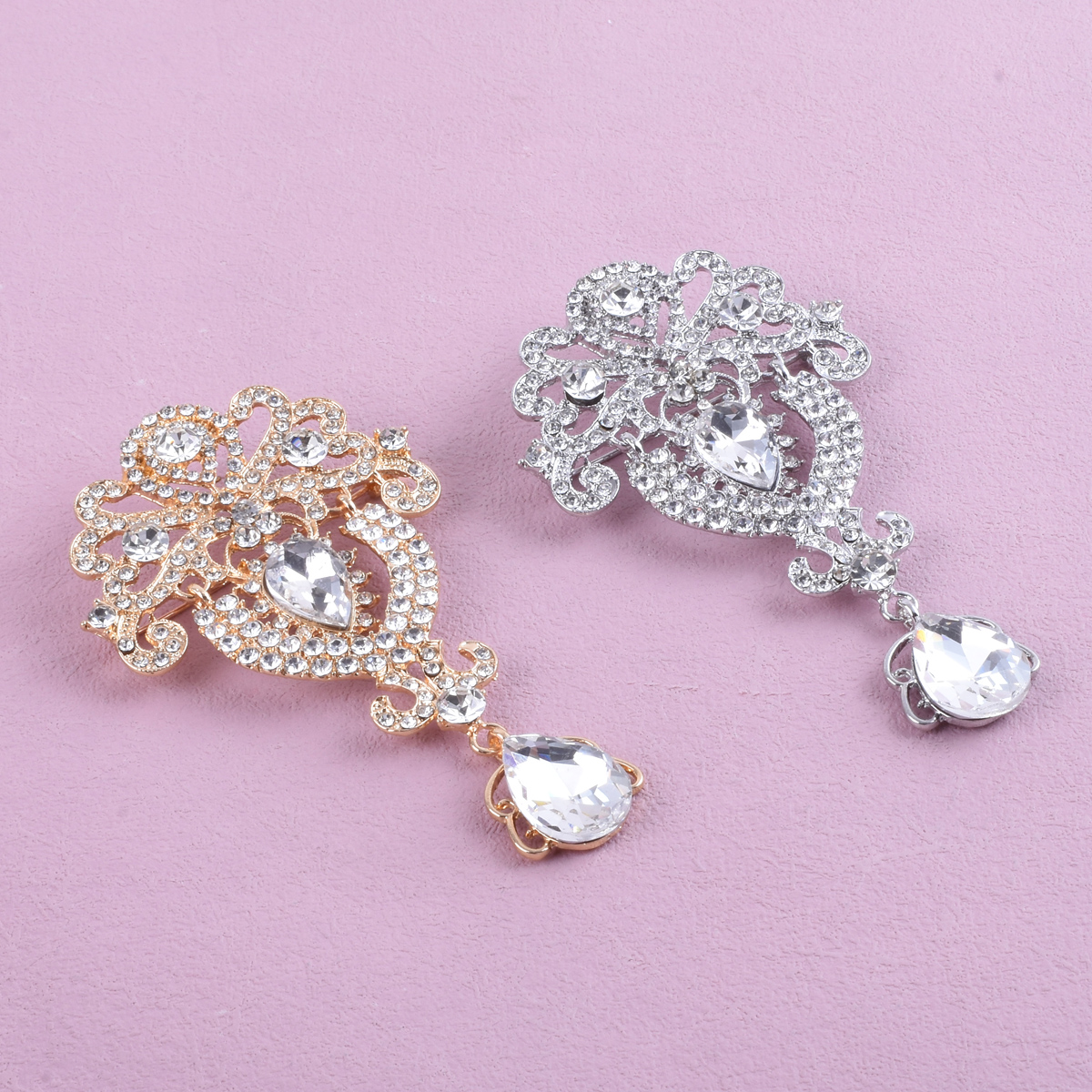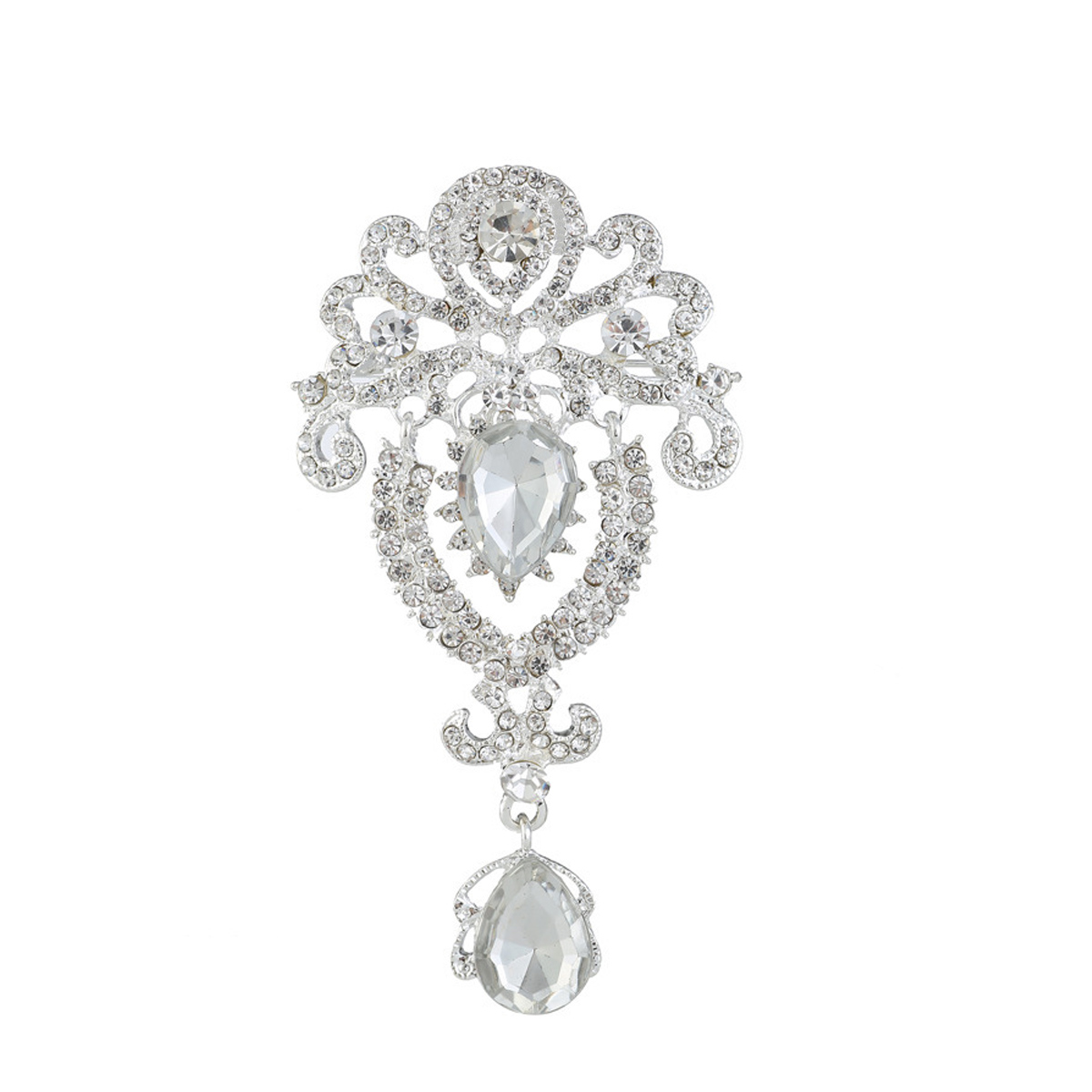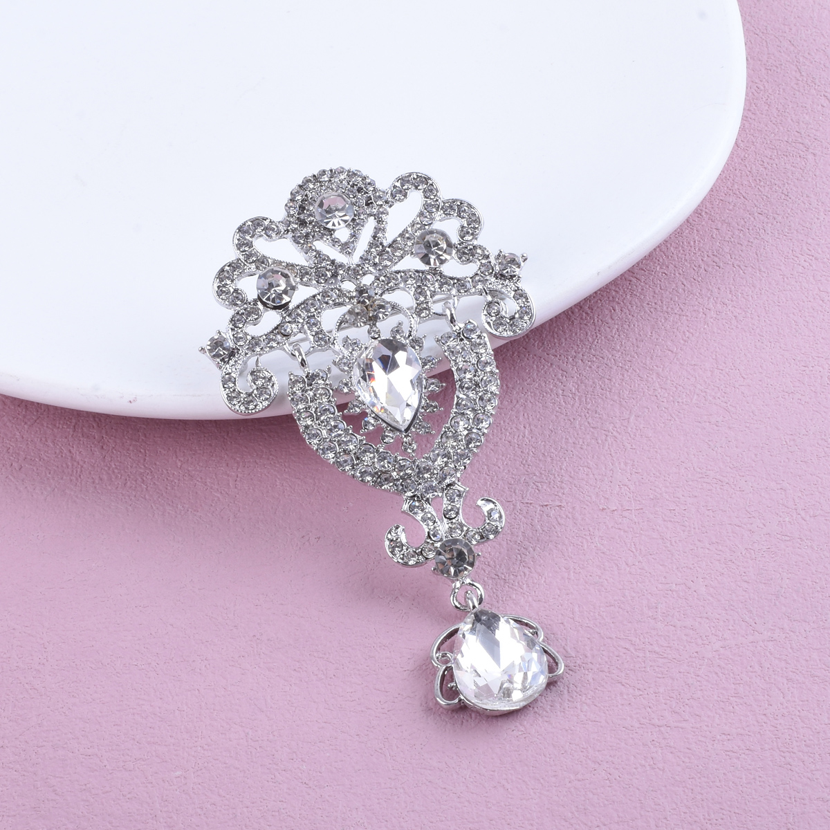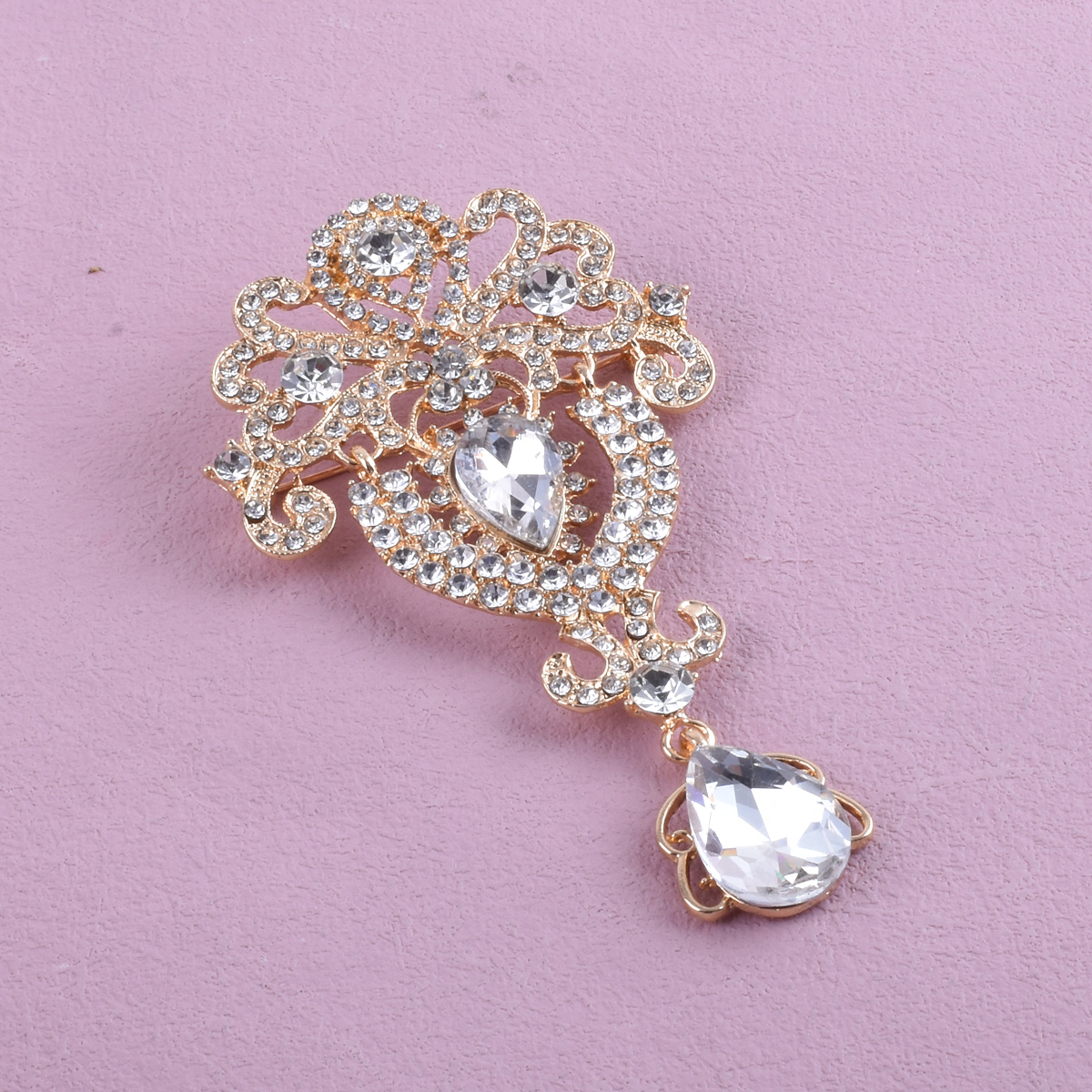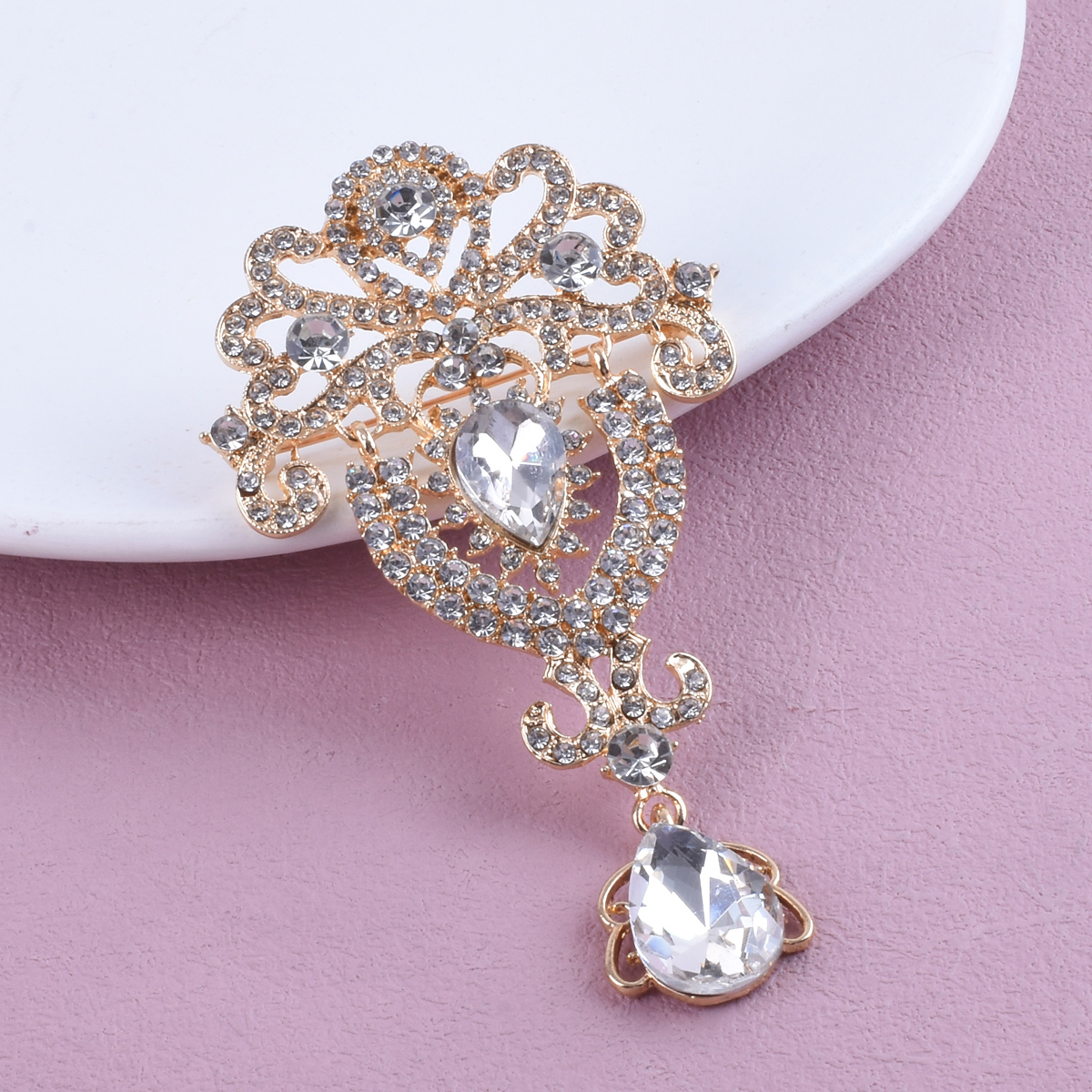 เข็มกลัด พลอยเทียม รูปลูกแพร์ – หมุดลายดอกไม้หรูหราเครื่องประดับเสื้อผ้าคริสตัลสําหรับผู้หญิง