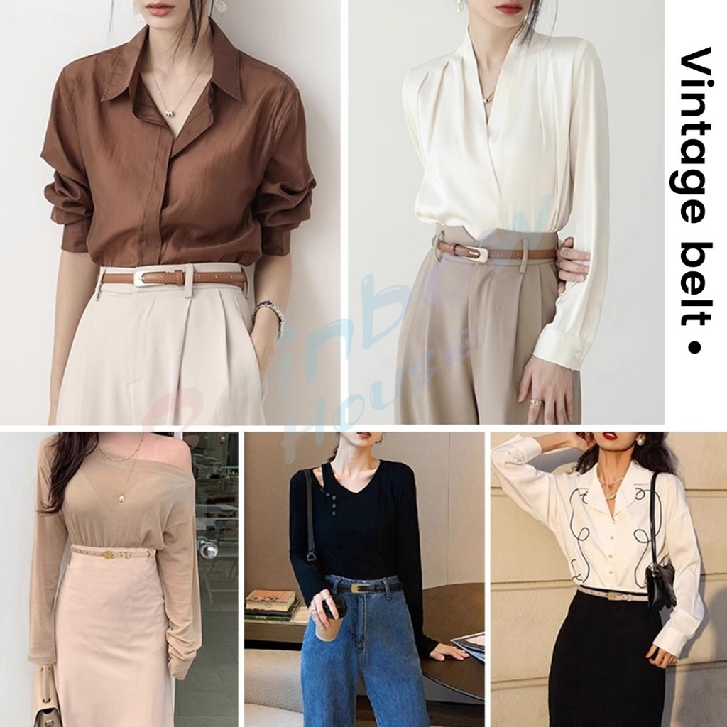 R.H. เข็มขัดผู้หญิง เข็มขัดแฟชั่น หนัง PU สำหรับผู้หญิง แนววินเทจ เข็มขัด Belt