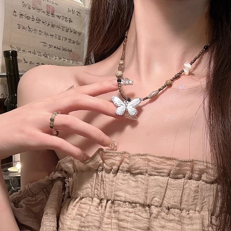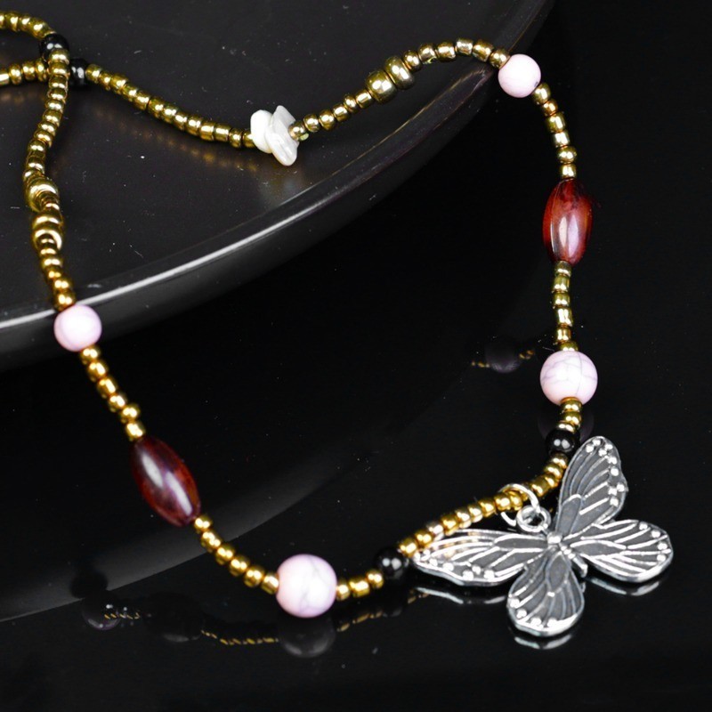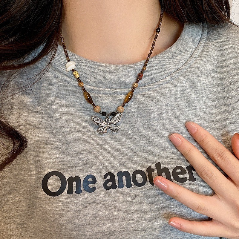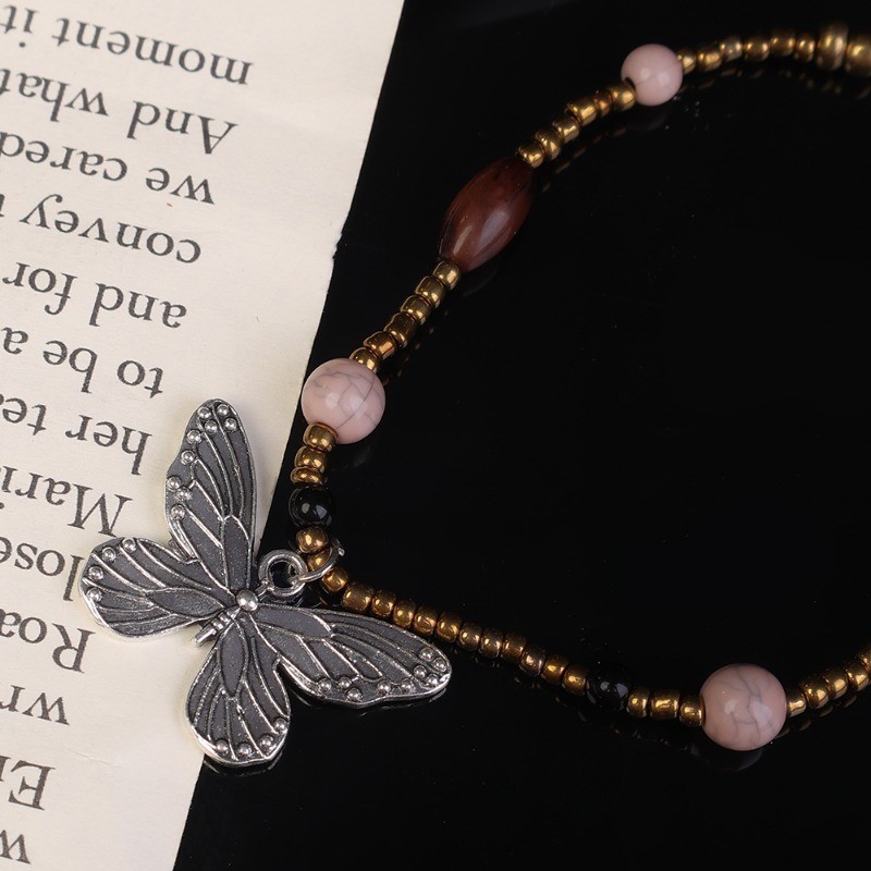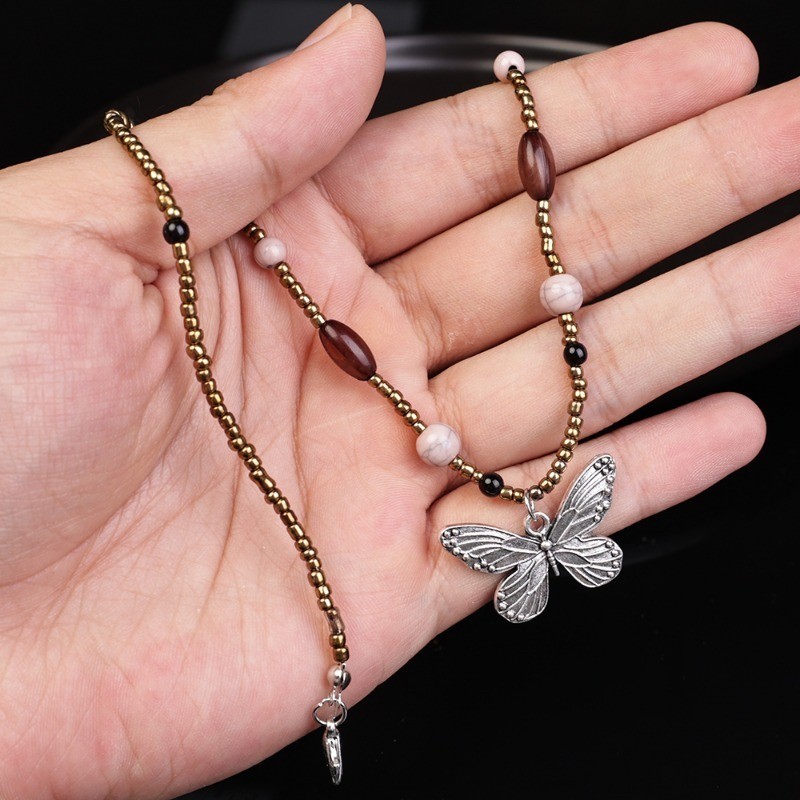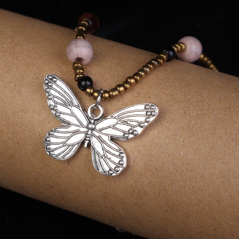 ผู้หญิงสาวโบฮีเมียนสไตล์ชาติพันธุ์ผีเสื้อจี้ลูกปัดสร้อยคอวินเทจแฟชั่นลูกปัดกระดูกไหปลาร้าโซ่สร้อยคอเครื่องประดับย้อนยุคพรรคของขวัญ