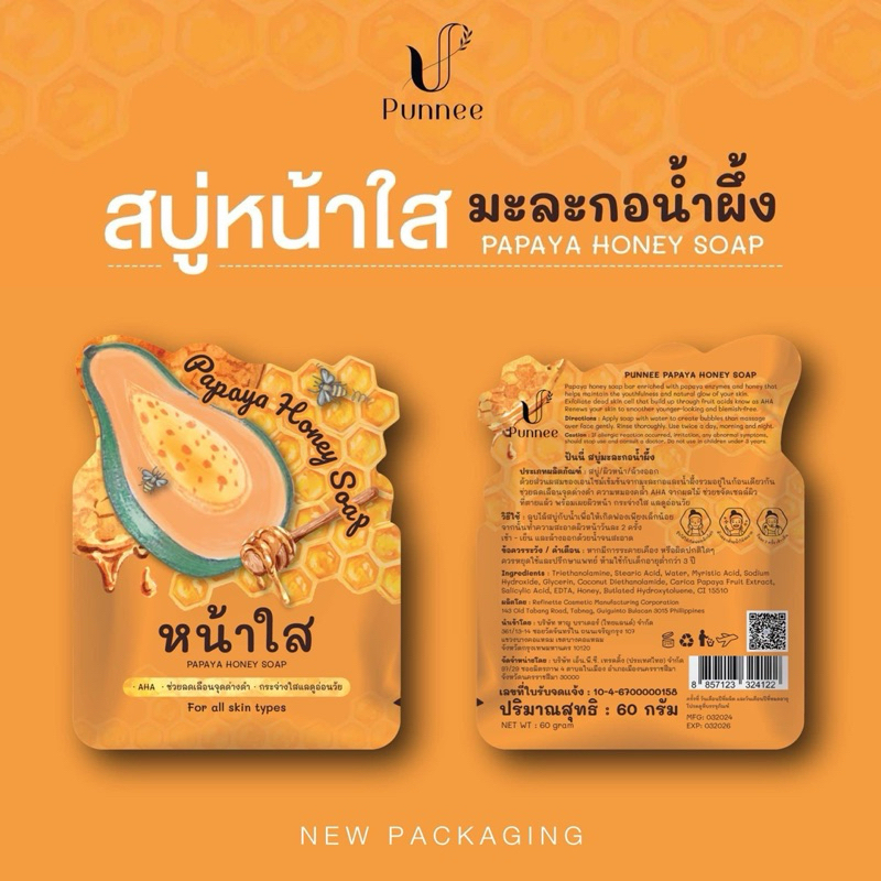 Punnee Papaya Honey : ปันนี่ สบู่มะละกอ น้ำผึ้ง (ปริมาณ 60กรัม)