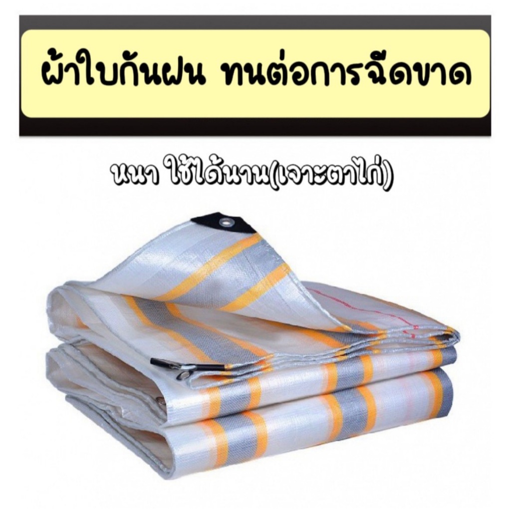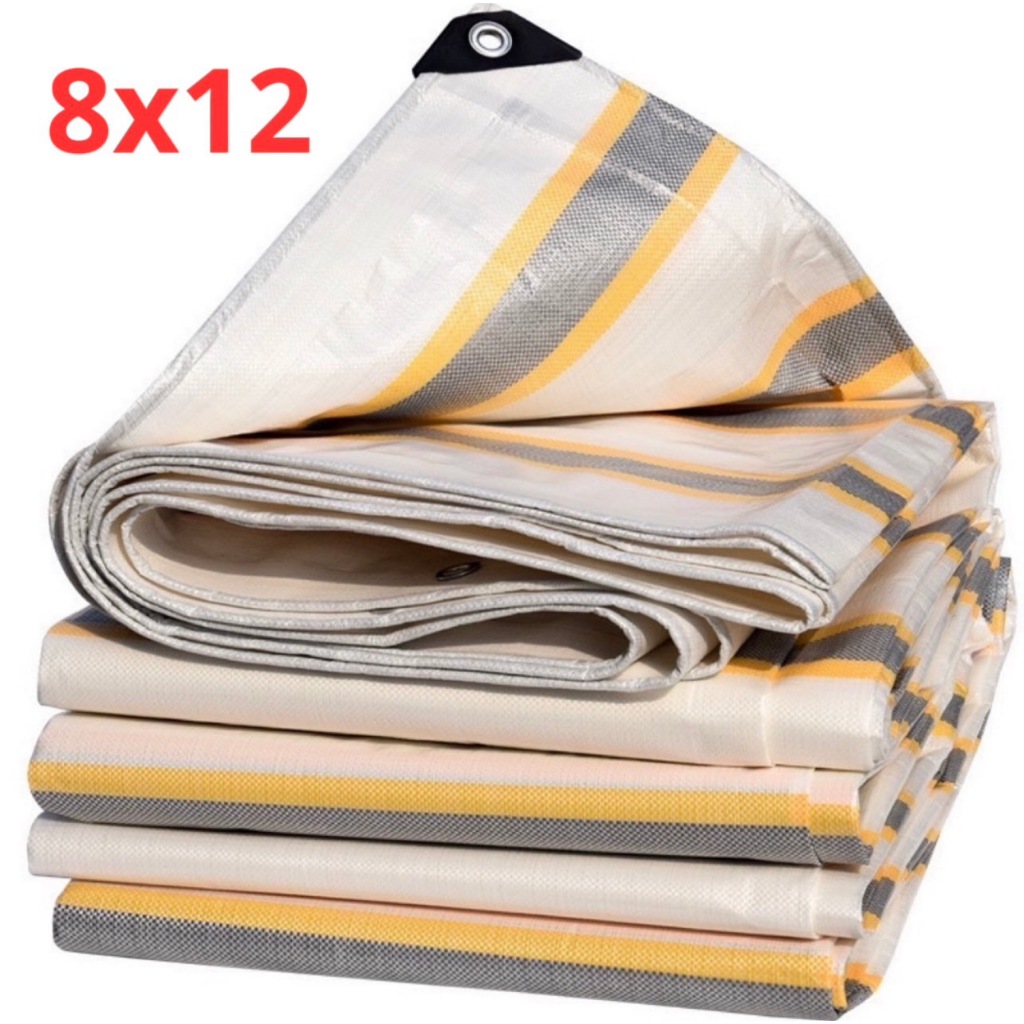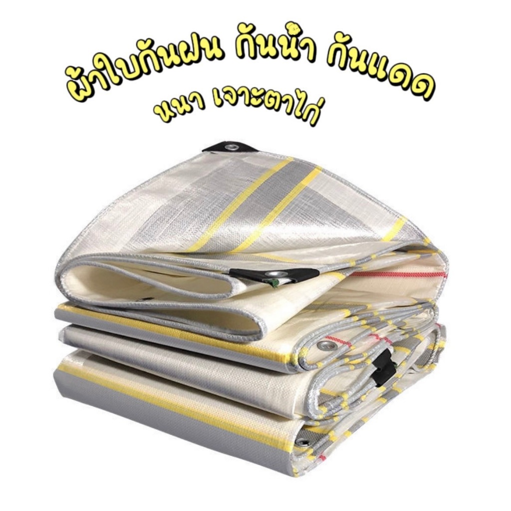 ผ้าใบกันฝน 4×5 5×6 5×8 8×12เมตร PEคลุมของ กันแดด(มีตาไก่) ผ้าใบขาวเหลืองกันฝน