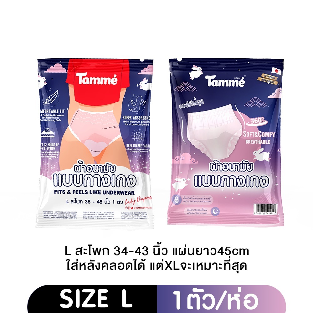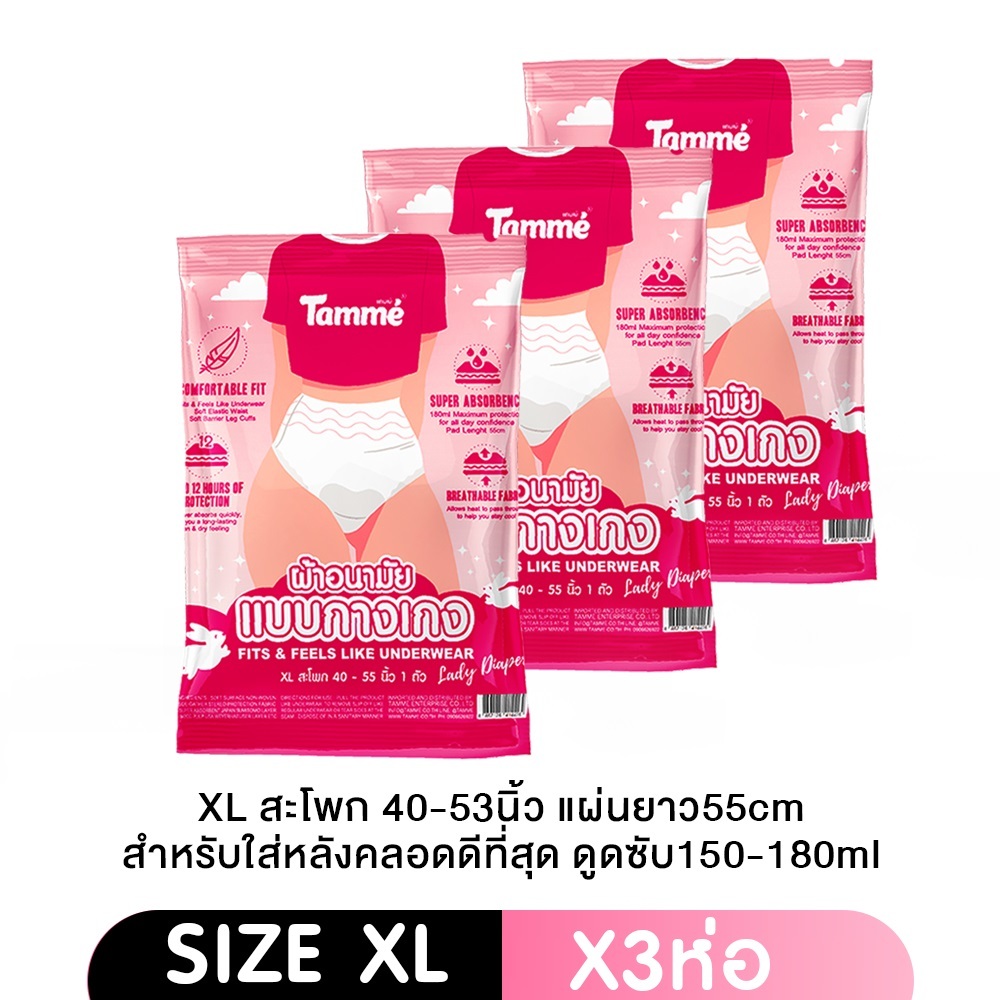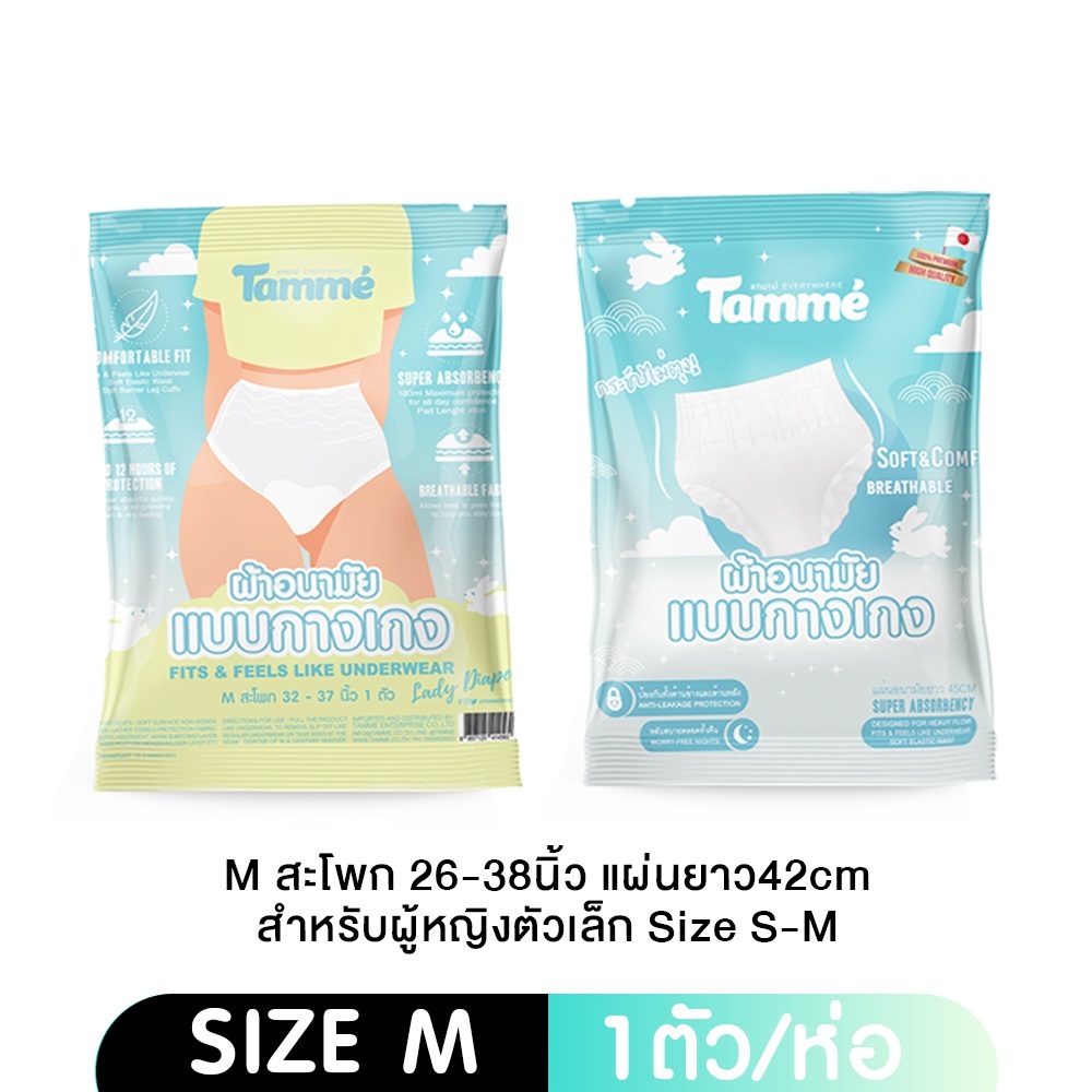 Tamme ผ้าอนามัย แบบกางเกง แทมเม่ มีให้เลือกสามไซส์ M,L,XL (1ห่อ/แพค)