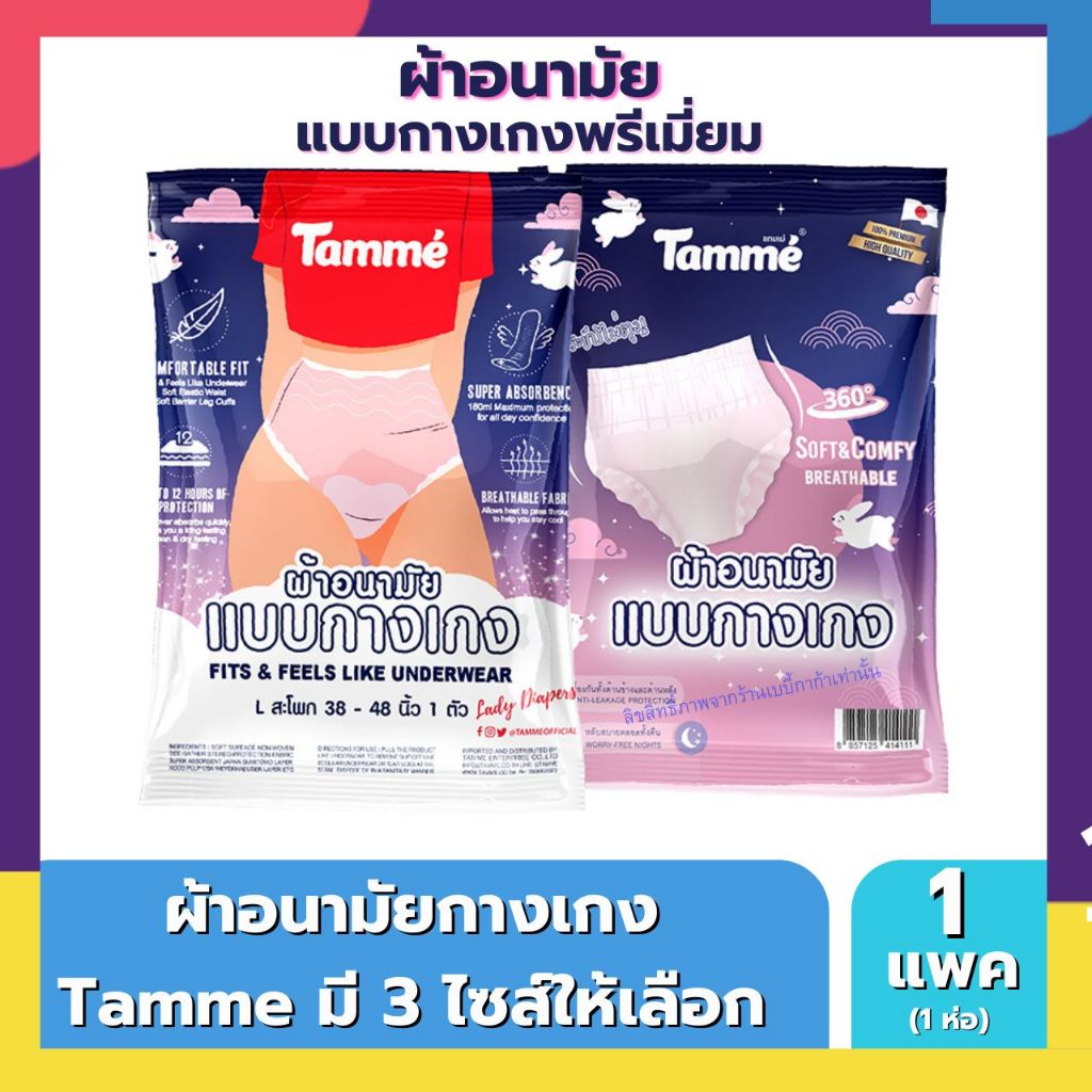 Tamme ผ้าอนามัย แบบกางเกง ผ้าอนามัยกางเกง แทมเม่ มีให้เลือกสามไซส์ M , L ,XL (1ห่อ/แพค) กดซื้อเยอะมีราคาส่ง
