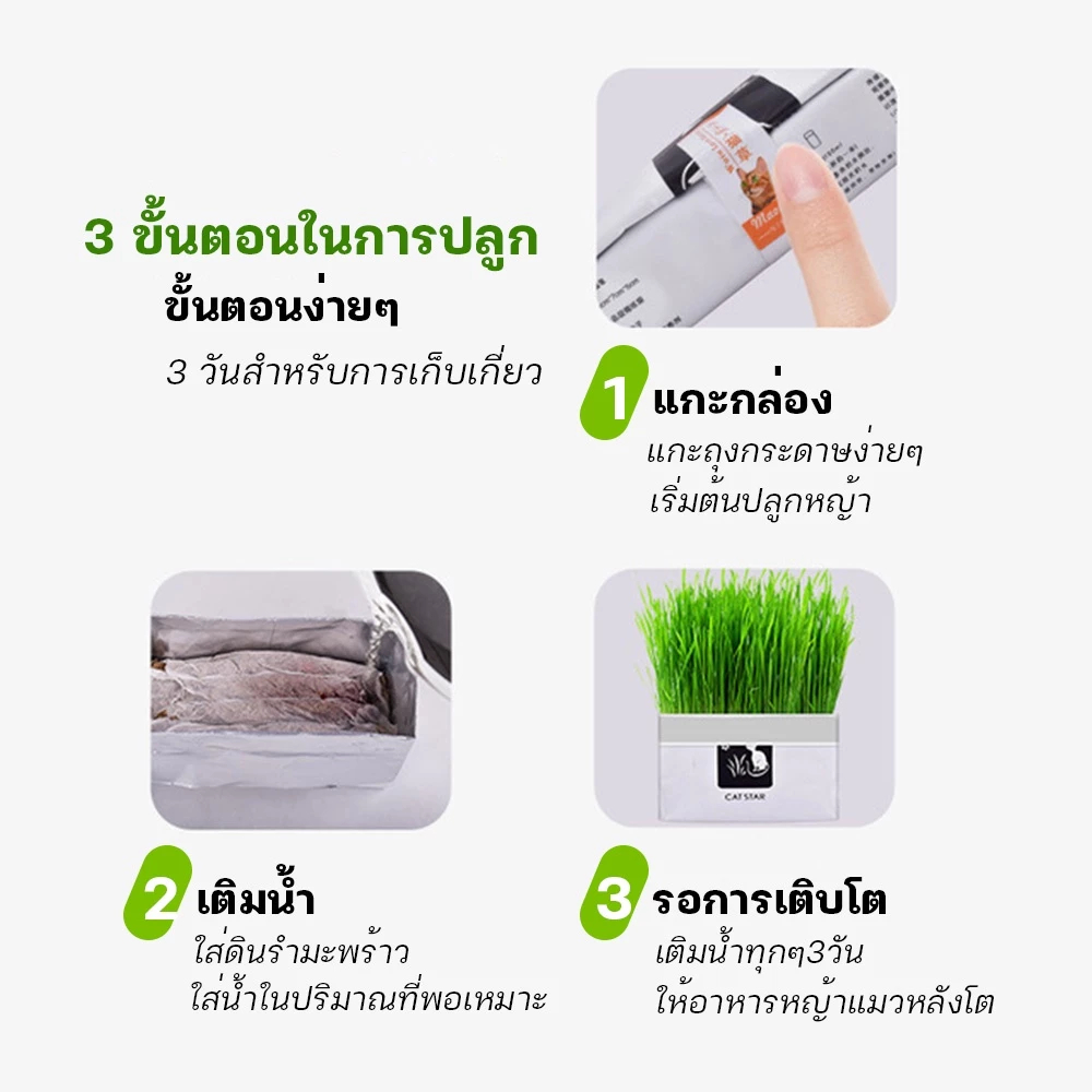 ชุดอุปกรณ์สำหรับปลูกหญ้าแมวเพื่อปลูกข้าวสาลีแมว หญ้าแมว ช่วยเสริมสร้างภูมิคุ้มกันและลดกลิ่นอุจจาระของสัตว์เลี้ยง