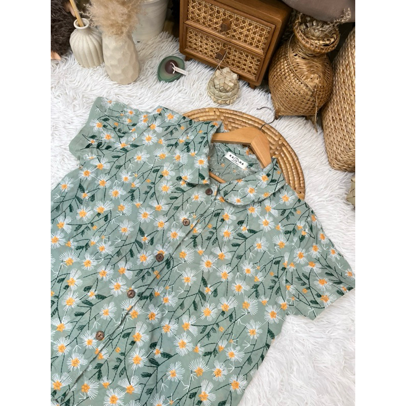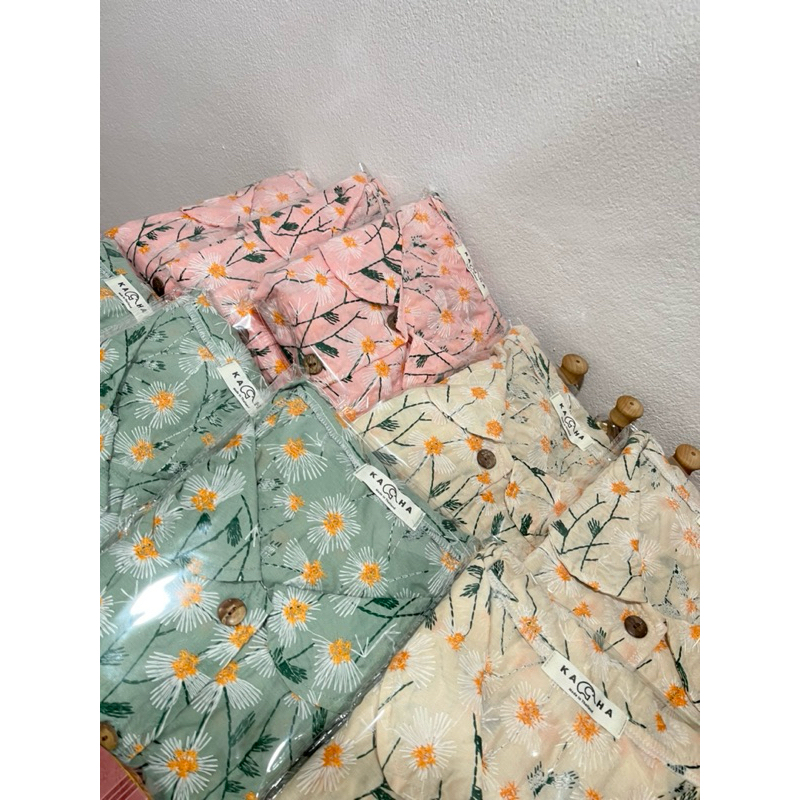 ? NEW COLLECTION ? เสื้อคอบัว ลายดอกเดซี่ ละมุน กระดุมหน้า ผ้าคอตตอนปักลาย น่ารักมาก ใส่สบาย เรียบร้อย ? Price: 420฿Color: สีครีม/ชมพู/เขียว Size: อก 42'' ยาว 23'' รอบวงแขน 18“
