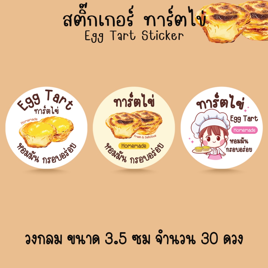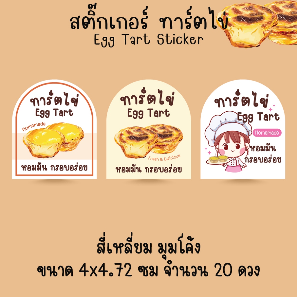 [โปร10แถม1] สติ๊กเกอร์ ทาร์ตไข่ ฉลากสินค้า ขนม เบเกอรี่ Egg Tart Bakery Sticker ไดคัท