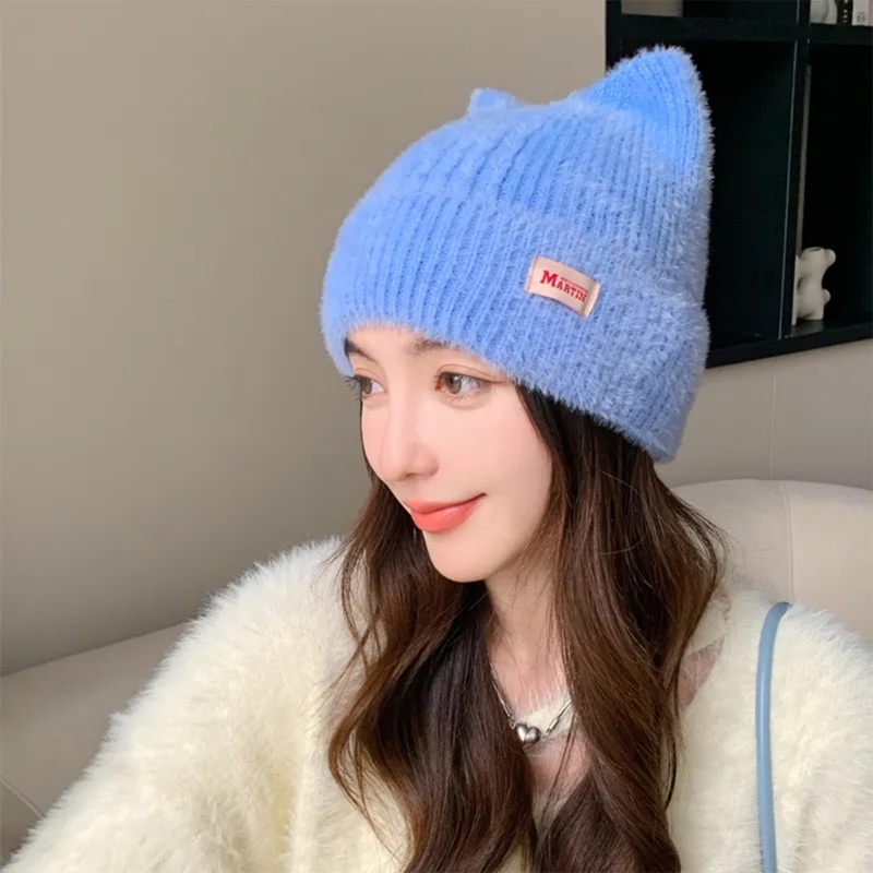 Alia แฟชั่นหมวกหูแมวสําหรับผู้หญิงถักหมวกหมวกอะนิเมะหูหมวกอบอุ่นเดินป่ากลางแจ้งเล่นสกีหมวกสาว Windproof Headwe