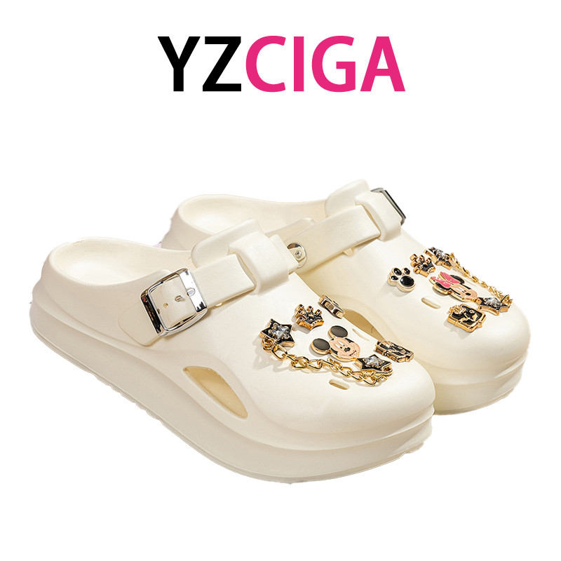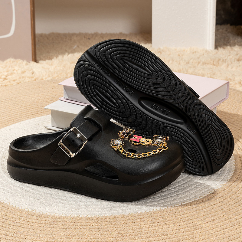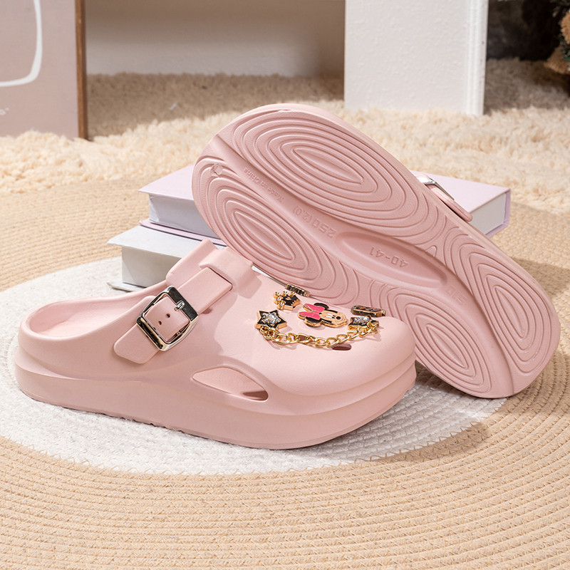 รองเท้าส้นเตี้ยผู้หญิงแบบตาข่าย ยางทอ ปิดนิ้วเท้า สวมใส่ได้