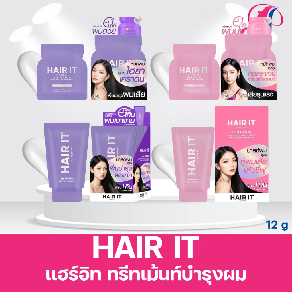Hair It แฮร์อิท ทรีทเม้นท์บำรุงผม 12 กรัม มี 2 สูตร เพิ่มความชุ่มชื้นอย่างล้ำลึก ปรับสภาพเส้นผมแห้งเสีย ให้นุ่มลื่น ผม