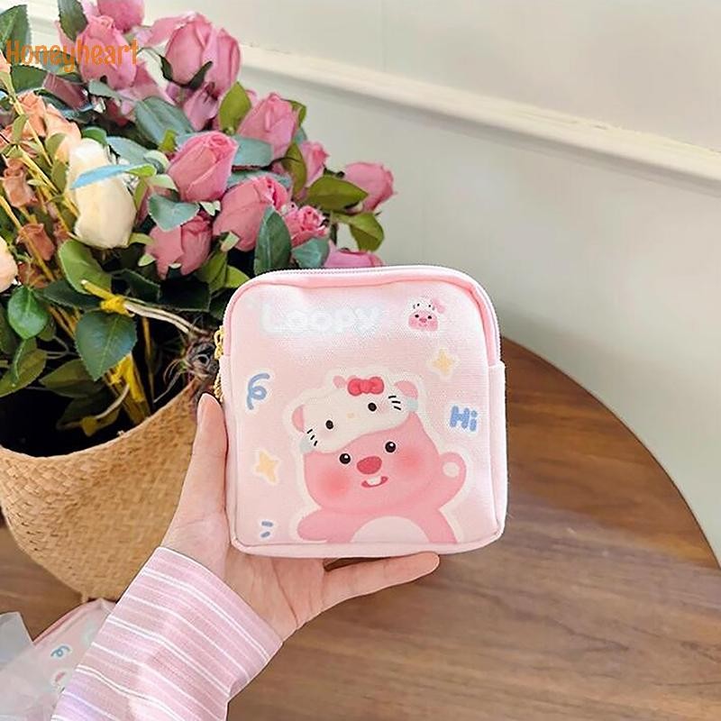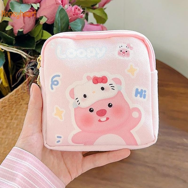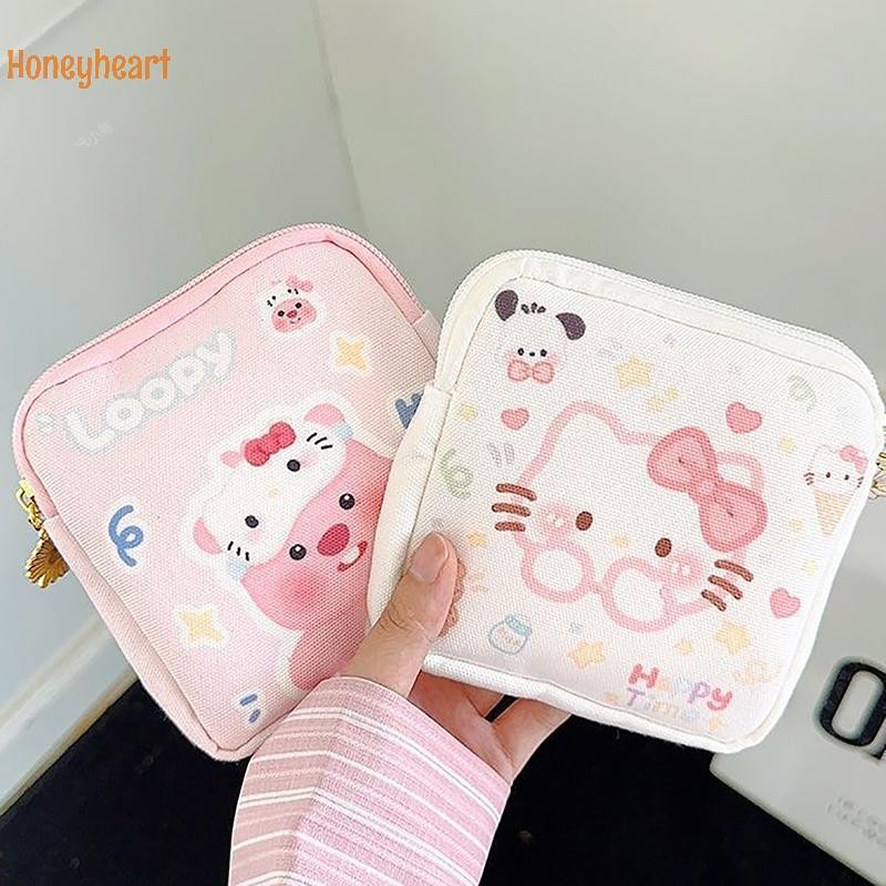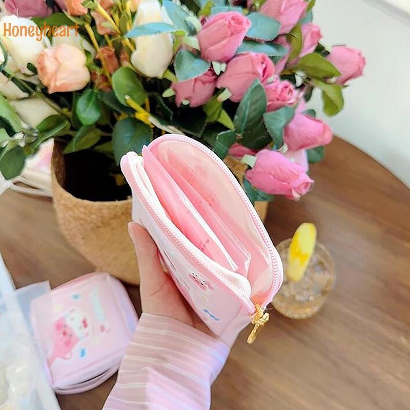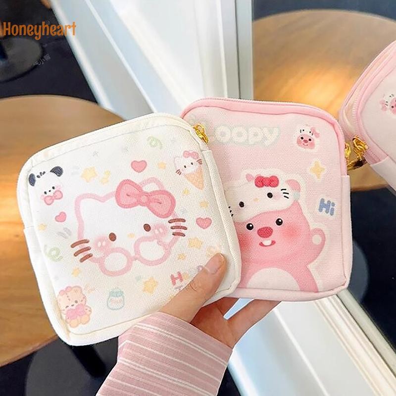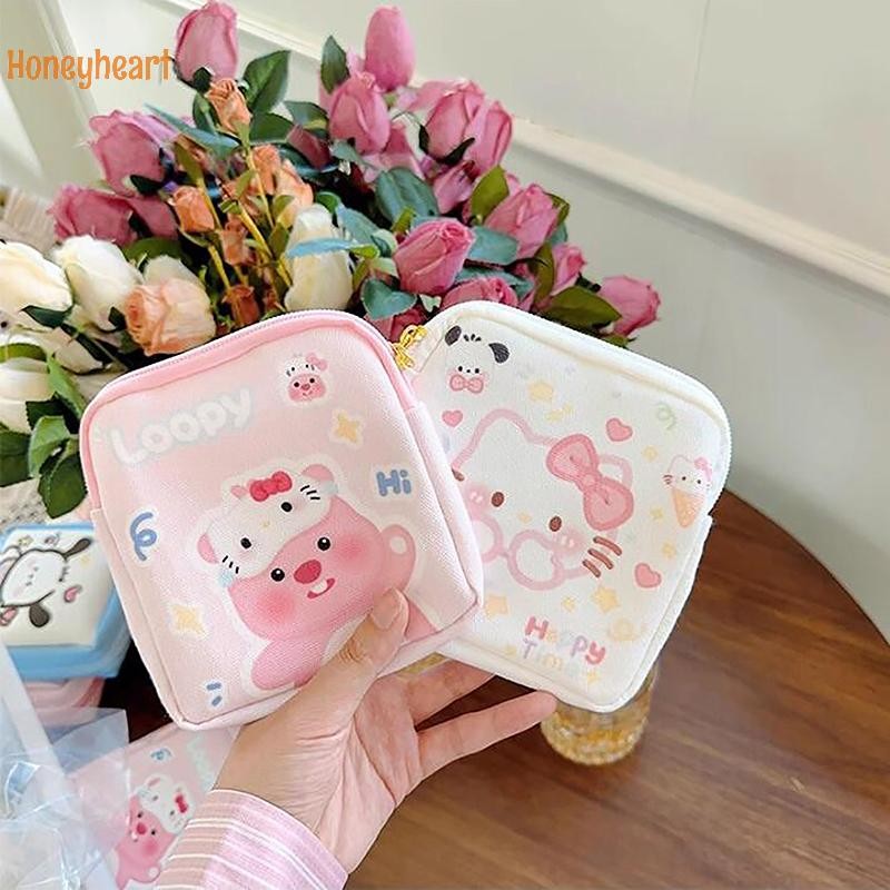 1PC มินิเครื่องสําอางกระเป๋าใส่เหรียญกระเป๋าของขวัญ Kawaii Sanrio Hello Kitty การ์ตูนผู้หญิง Tampton ผ้าอนามัยถุงเก็บ Nice