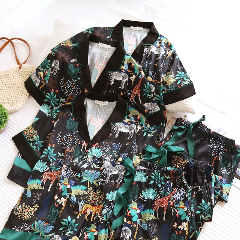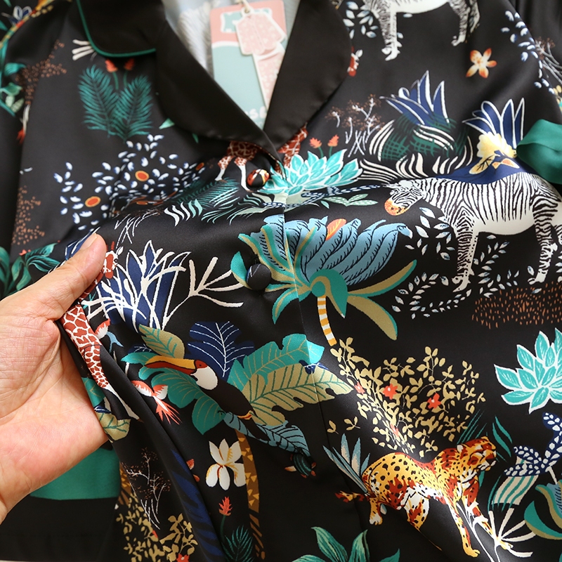 ชุดนอน Muslin Pajamas Silk Satin รุ่น Greenery Zoo (N2145 T2145 L2145) | ชุดนอนชุดเที่ยว