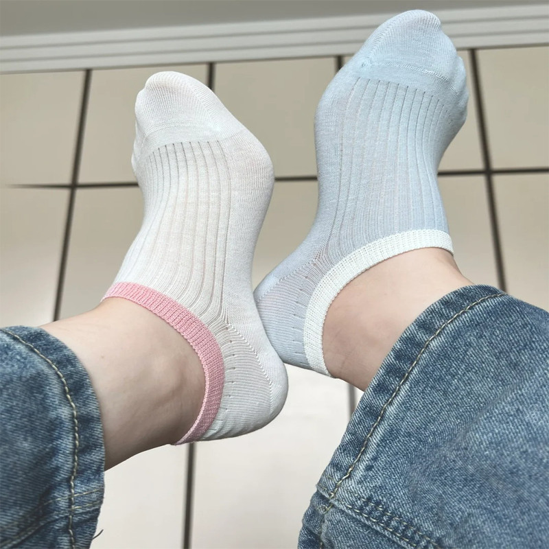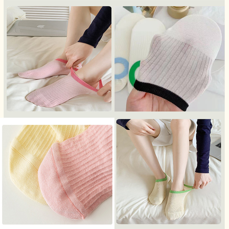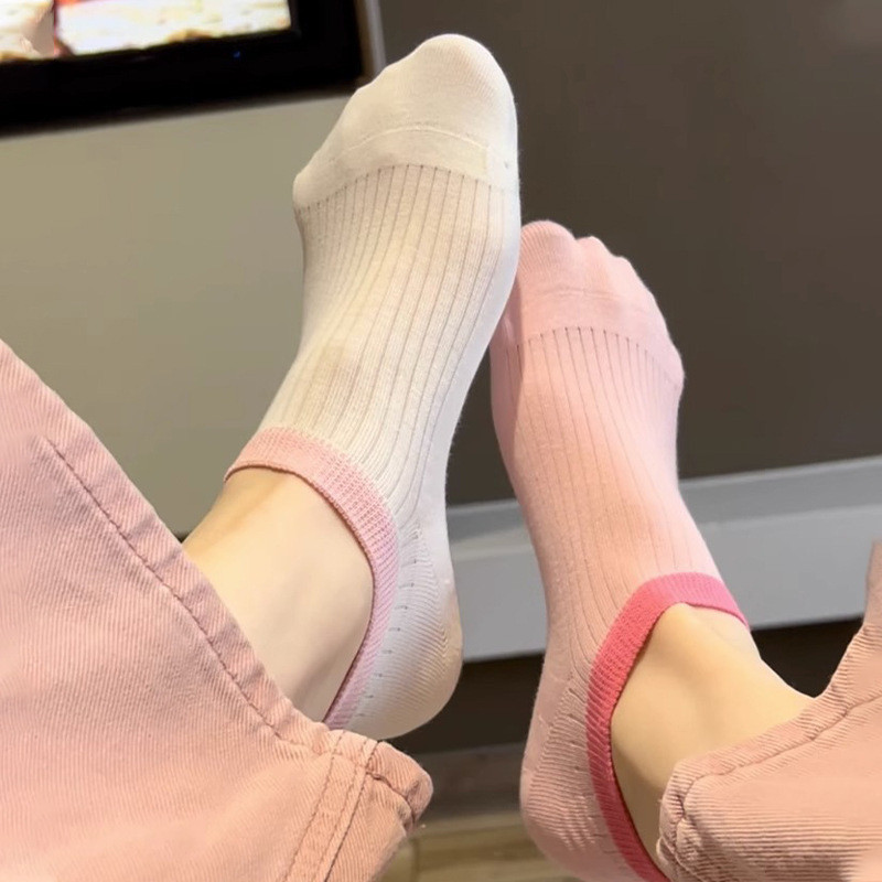 โดปามีน ตัดกันสีถุงเท้าเรือผ้าฝ้ายแท้แสงและไอศกรีมบางสีถุงเท้าเรือไม่มีกระดูกกําจัดกลิ่นดูดซับเหงื่อระบายอากาศถุงเท้าที่มองไม่เ