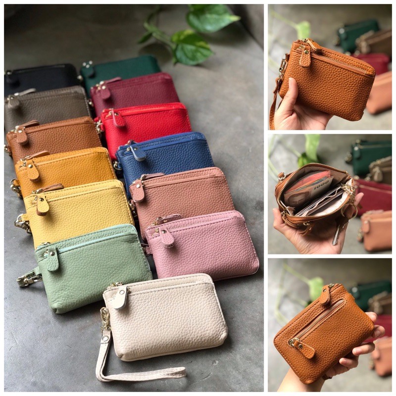 กระเป๋าหนังวัวใบเล็ก หนังนุ่มมม ซับด้านในทออย่างดี ทั้ง3ช่องซิป