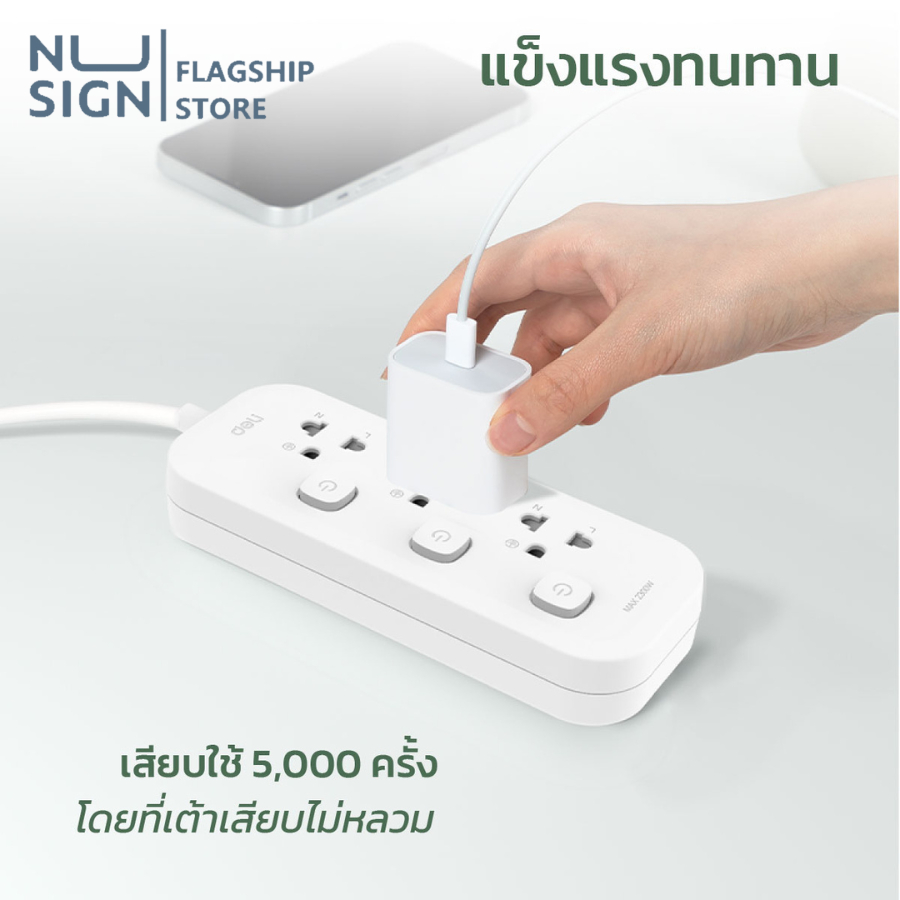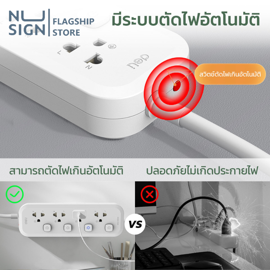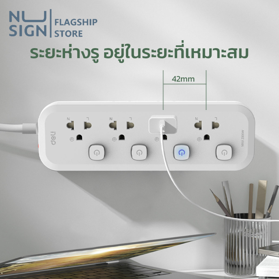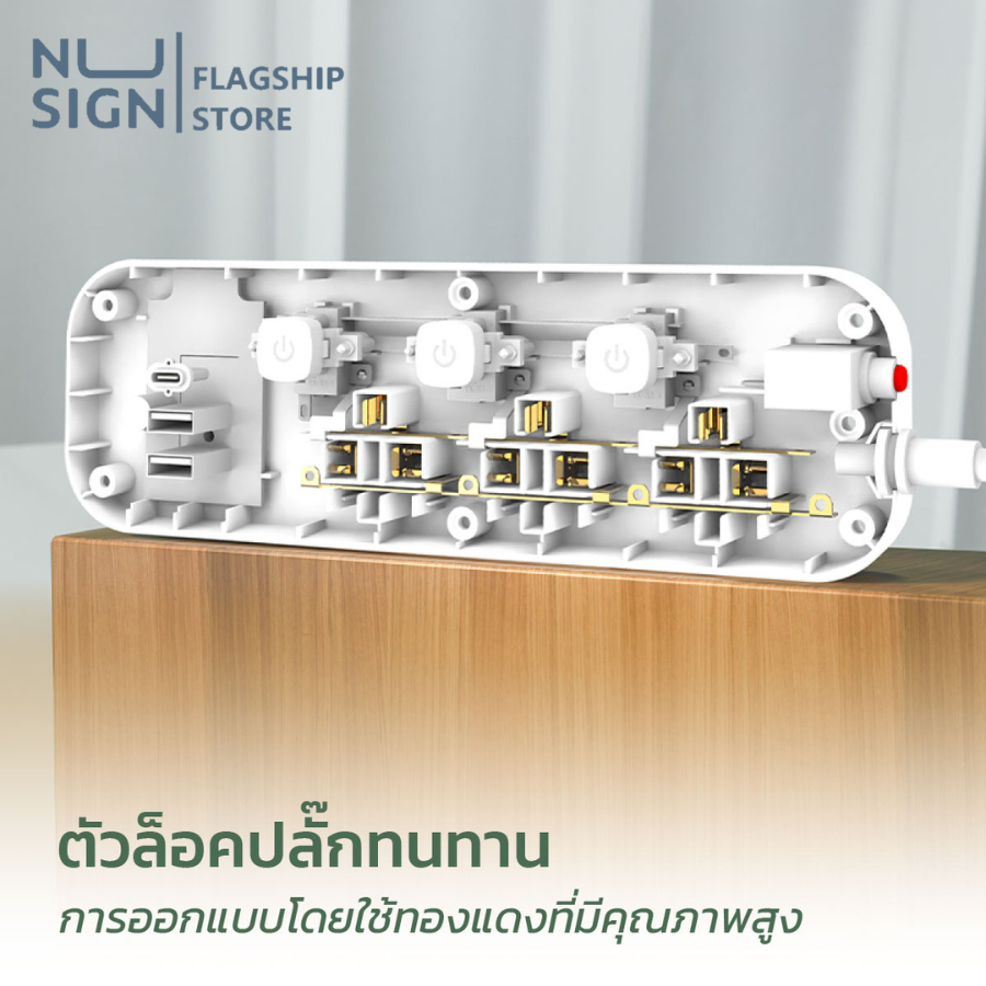 ②Nusign ปลั๊กพ่วง ปลั๊กไฟ 4-5ช่อง 3 ตา ความ3/5เมตร 10A 2300W สวิตซ์แยกปลั๊ก USB Type-C มีมอก.รับประกัน 3 ปี Power socket
