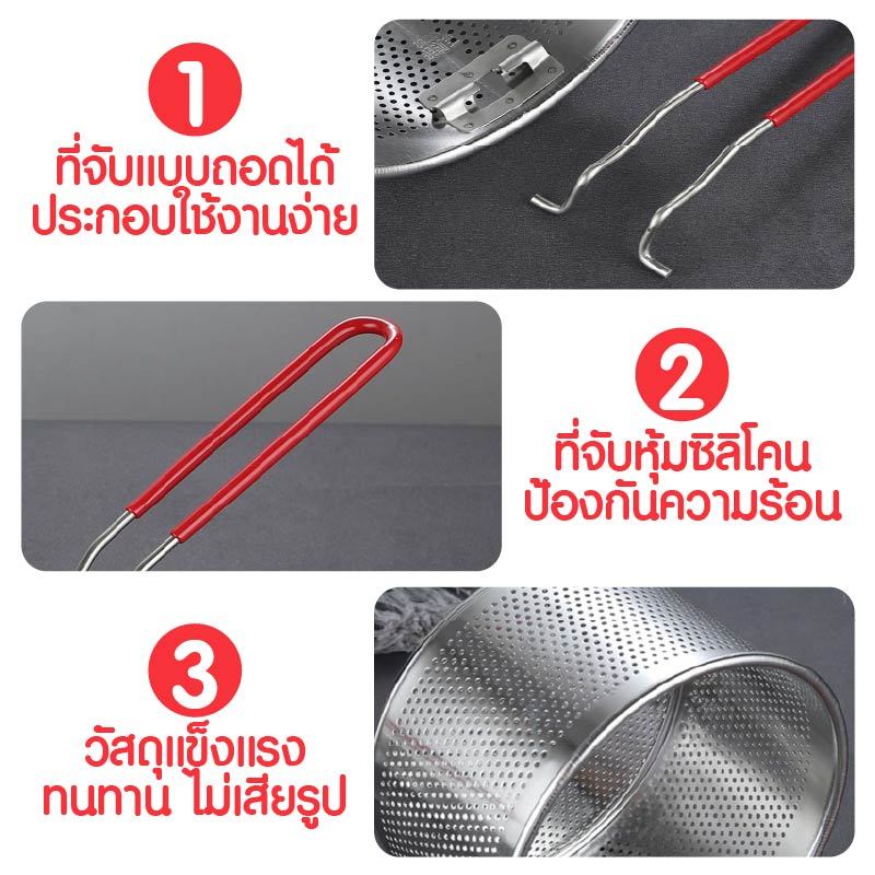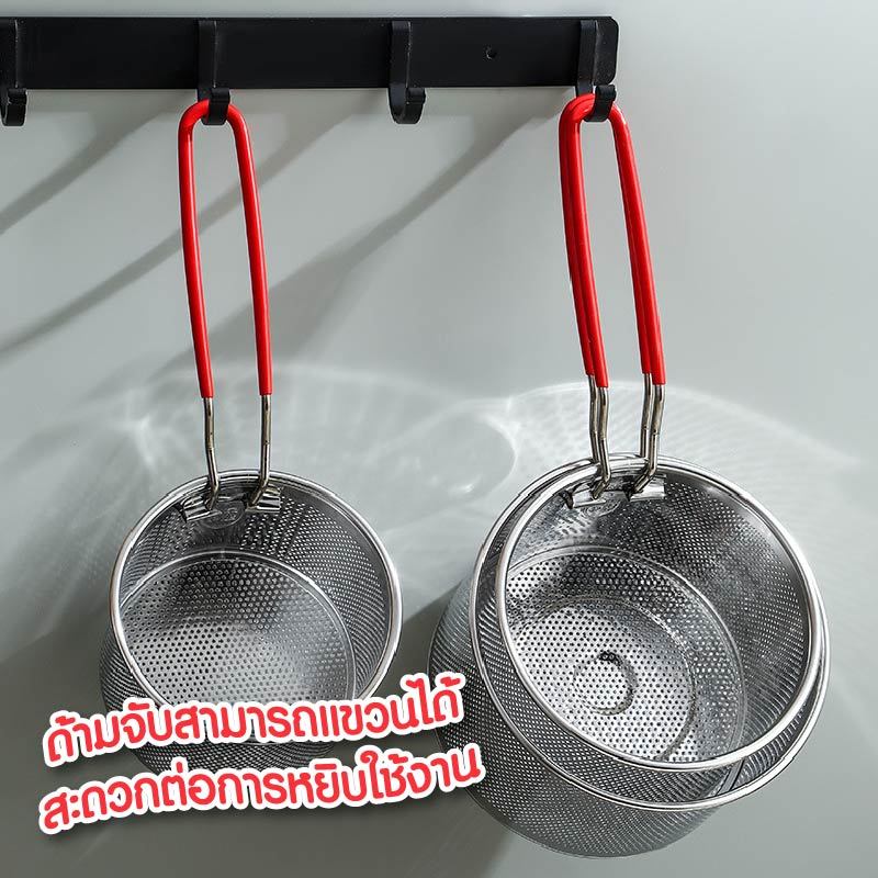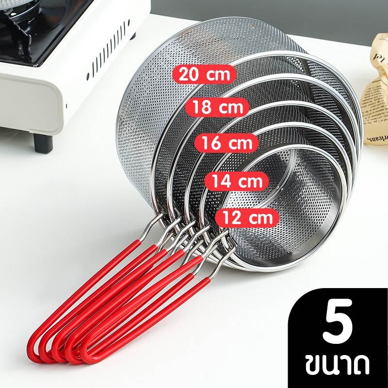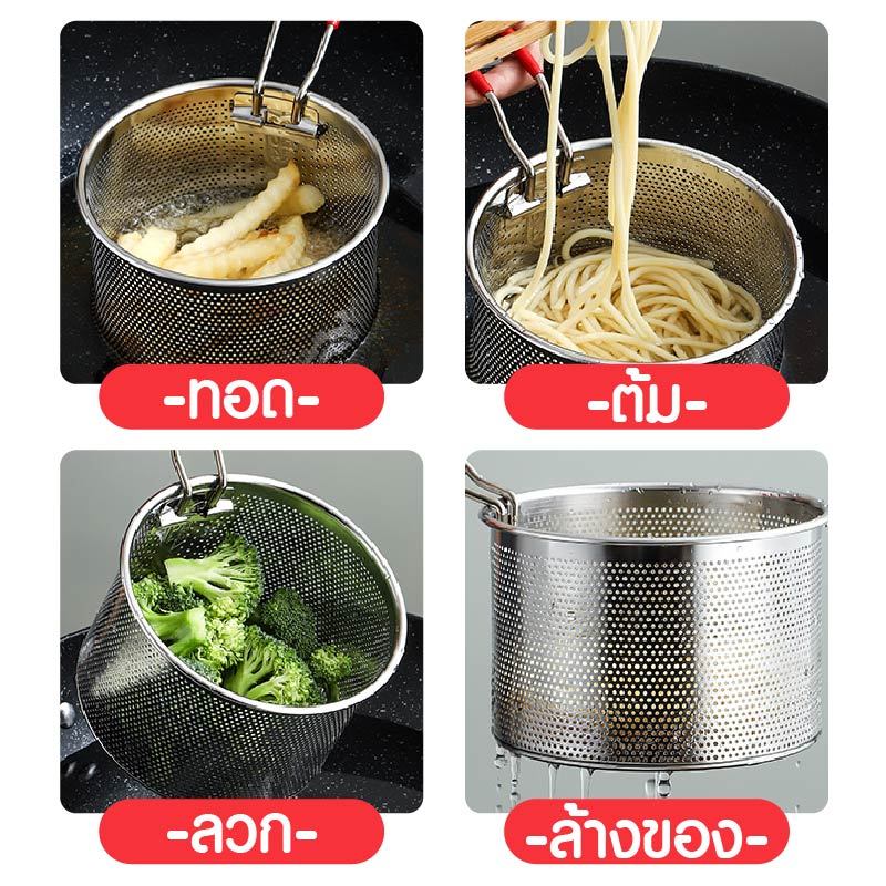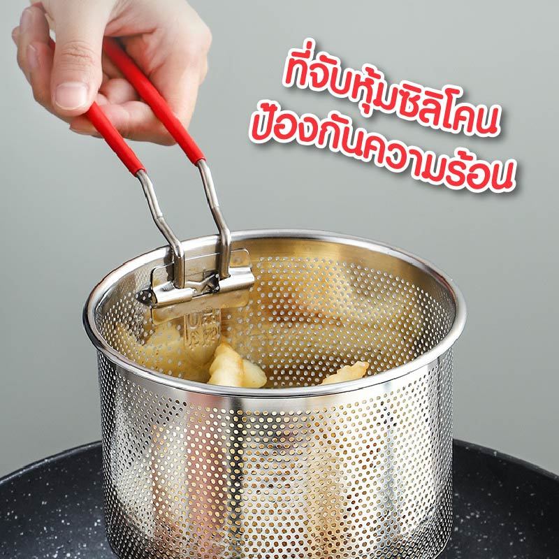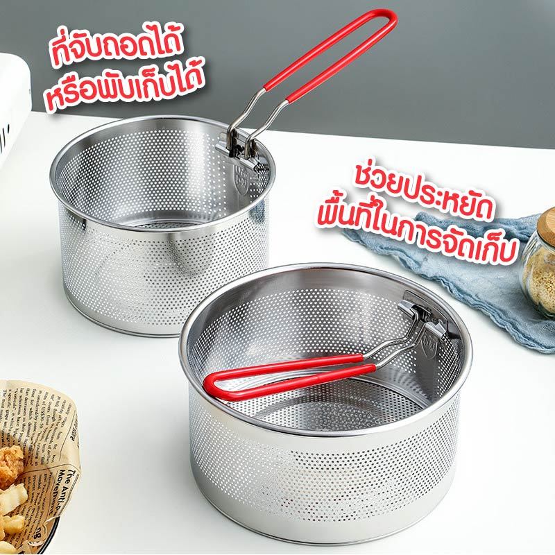 ตะแกรงทอดสแตนเลส 12cm/14cm/16cm/18cm/20cm ตะกร้าทอดสแตนเลส ด้ามจับหุ้มยางกันร้อน