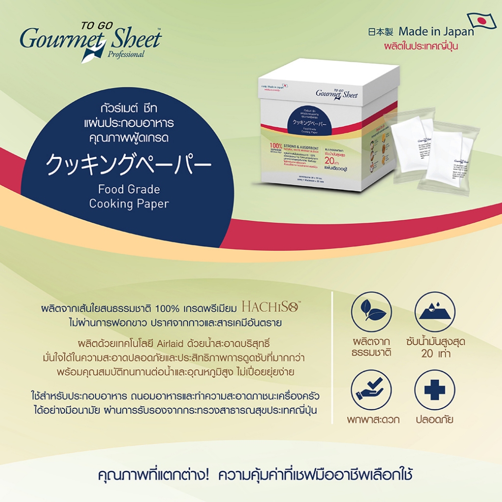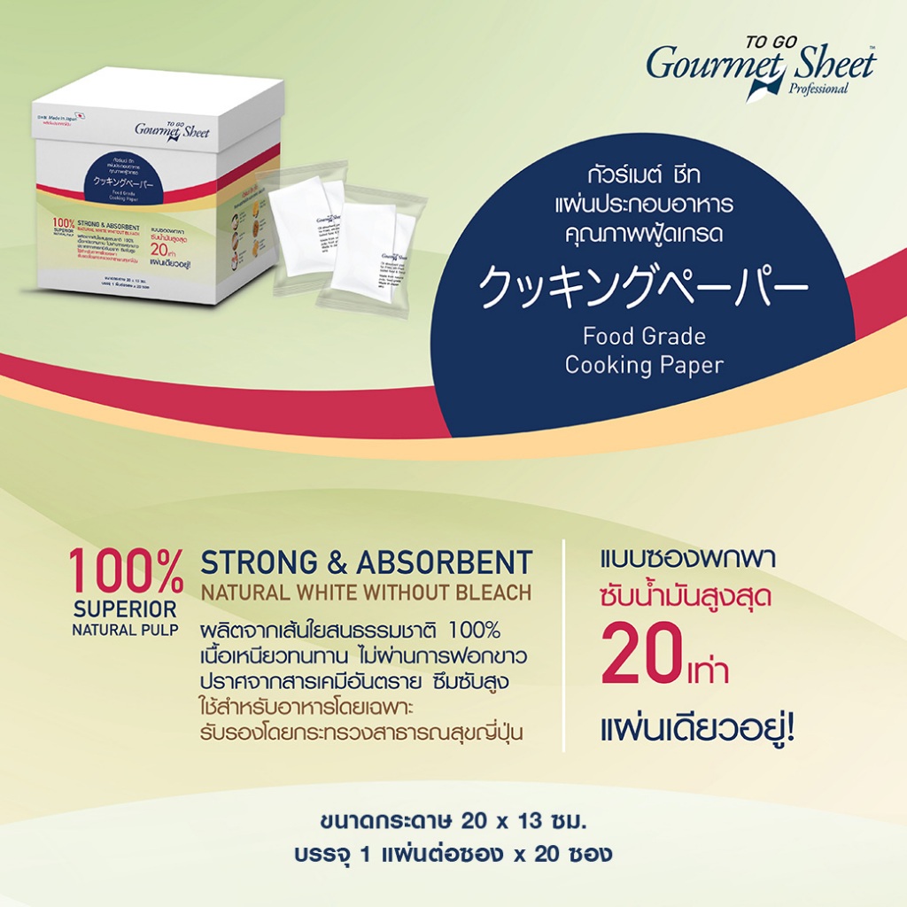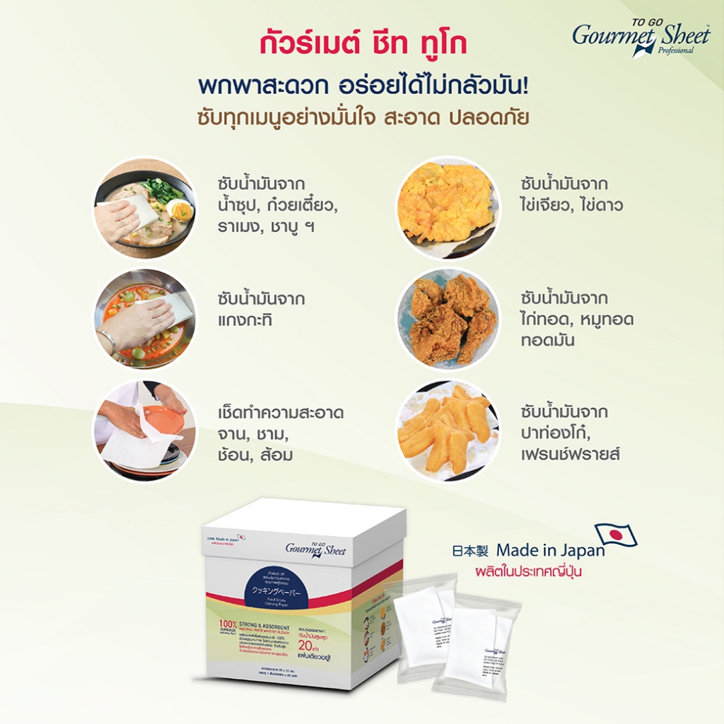 กัวร์เมต์ ชีท ทูโก กระดาษซับน้ำมันอาหารและของทอด ฟู้ดเกรดจากญี่ปุ่น ชนิดพกพา 1 กล่อง (20 ซอง) Gourmet Sheet
