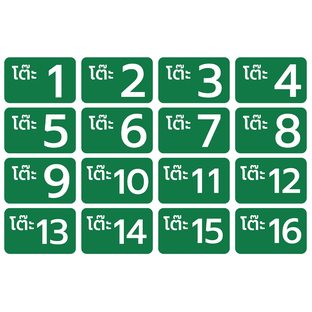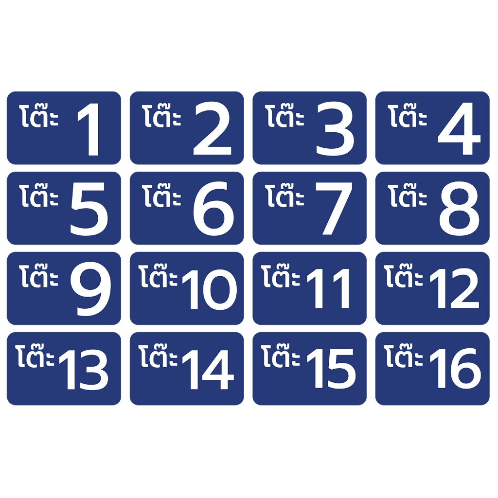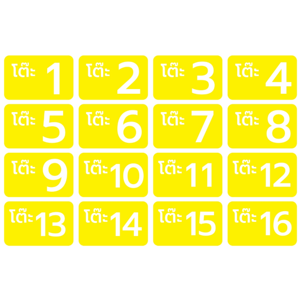 - สติ้กเกอร์กันน้้ำ ติดโต๊ะ, เบอร์โต๊ะ, เลขโต๊ะ (ป้ายเลขโต๊ะ สติกเกอร์โต๊ะเบอร์ 1-16) 16 ดวง 1 แผ่น A4 [รหัส C-054]