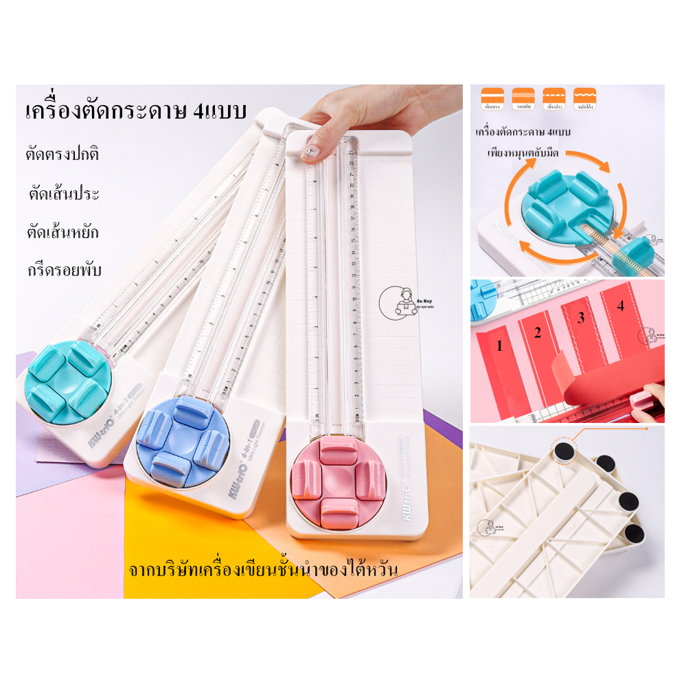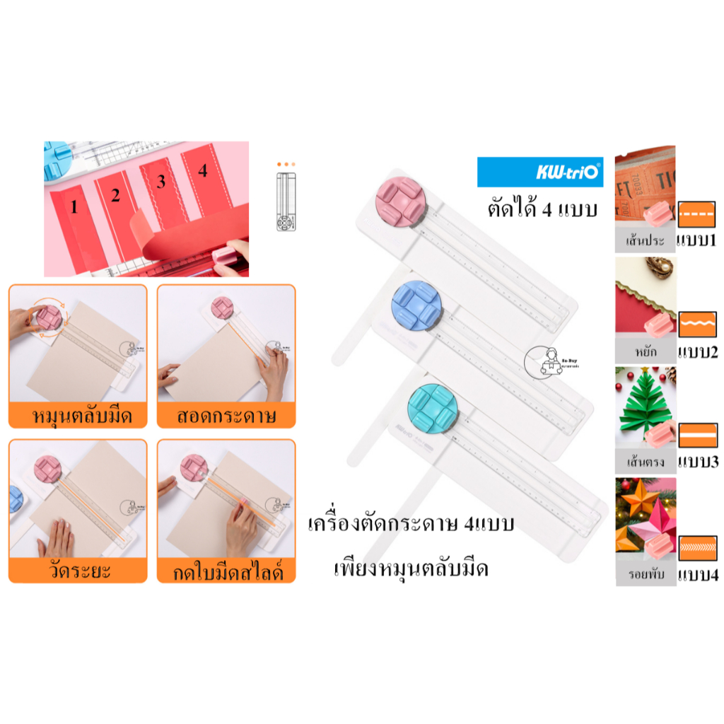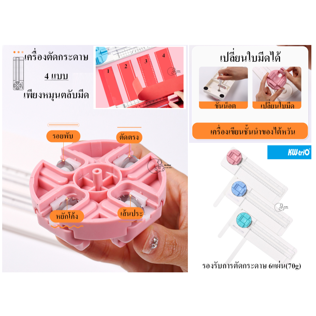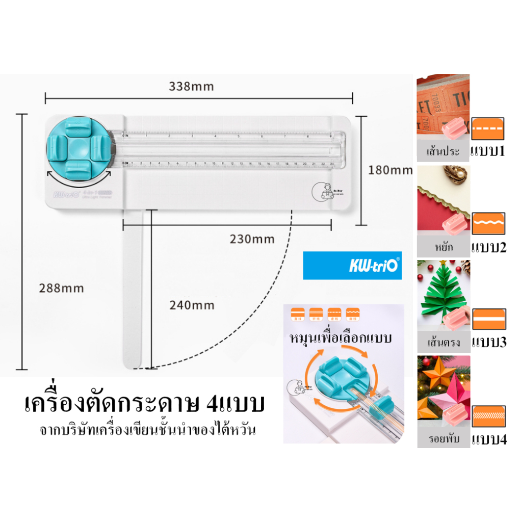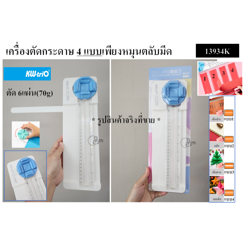 Kw-Trio 13934K เครื่องตัดกระดาษ 4แบบเพียงหมุนตลับมีด เปลี่ยนใบมีดได้ จากไต้หวัน 4ใน1 ตัดตรง ประ ตัดหยัก รอยพับ พร้อมส่ง